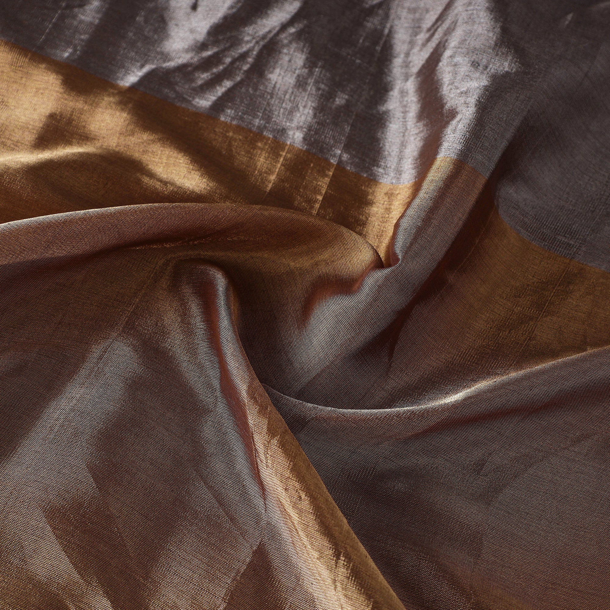 Elevate your style with this fine-quality traditional chanderi silk handloom tissue double tone full zari fabric by master artisan Rauph Khan. Chanderi silk is known for its gossamer looks and amazing feel, woven in the historic town of Chanderi in Madhya Pradesh. This fabric, featuring a unique double-tone effect and intricate full zari work, is not dyeable. Its lightweight, sheer texture ensures comfort while adding a touch of timeless sophistication to sarees, lehengas, and festive garments.