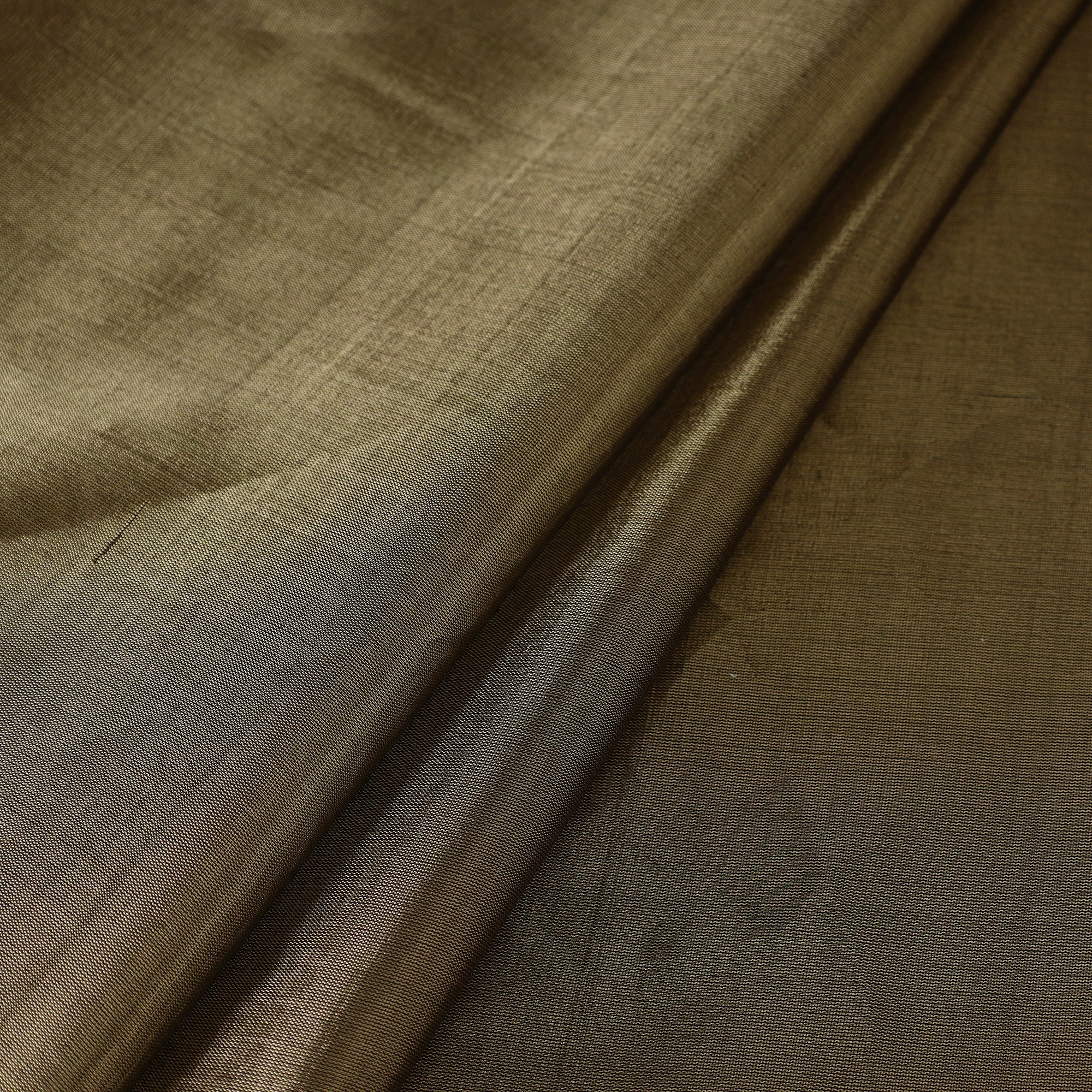 Elevate your style with this fine-quality traditional green chanderi silk handloom tissue full gold zari fabric by master artisan Rauph Khan. Chanderi silk is known for its gossamer looks and amazing feel, woven in the historic town of Chanderi in Madhya Pradesh. This fabric, featuring intricate gold and mercerized zari work, is not dyeable. Its lightweight, sheer texture ensures comfort while adding a touch of timeless sophistication to sarees, lehengas, and festive garments.
