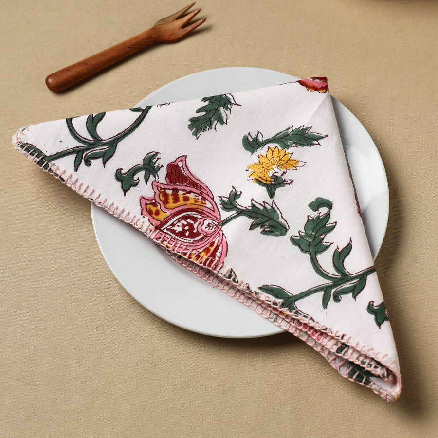 Fine-quality white block print hand embroidery cotton table napkin crafted with intricate traditional patterns add a touch of timeless elegance to any table setting. Perfect for formal dinners or casual gatherings, they effortlessly combine style and functionality.