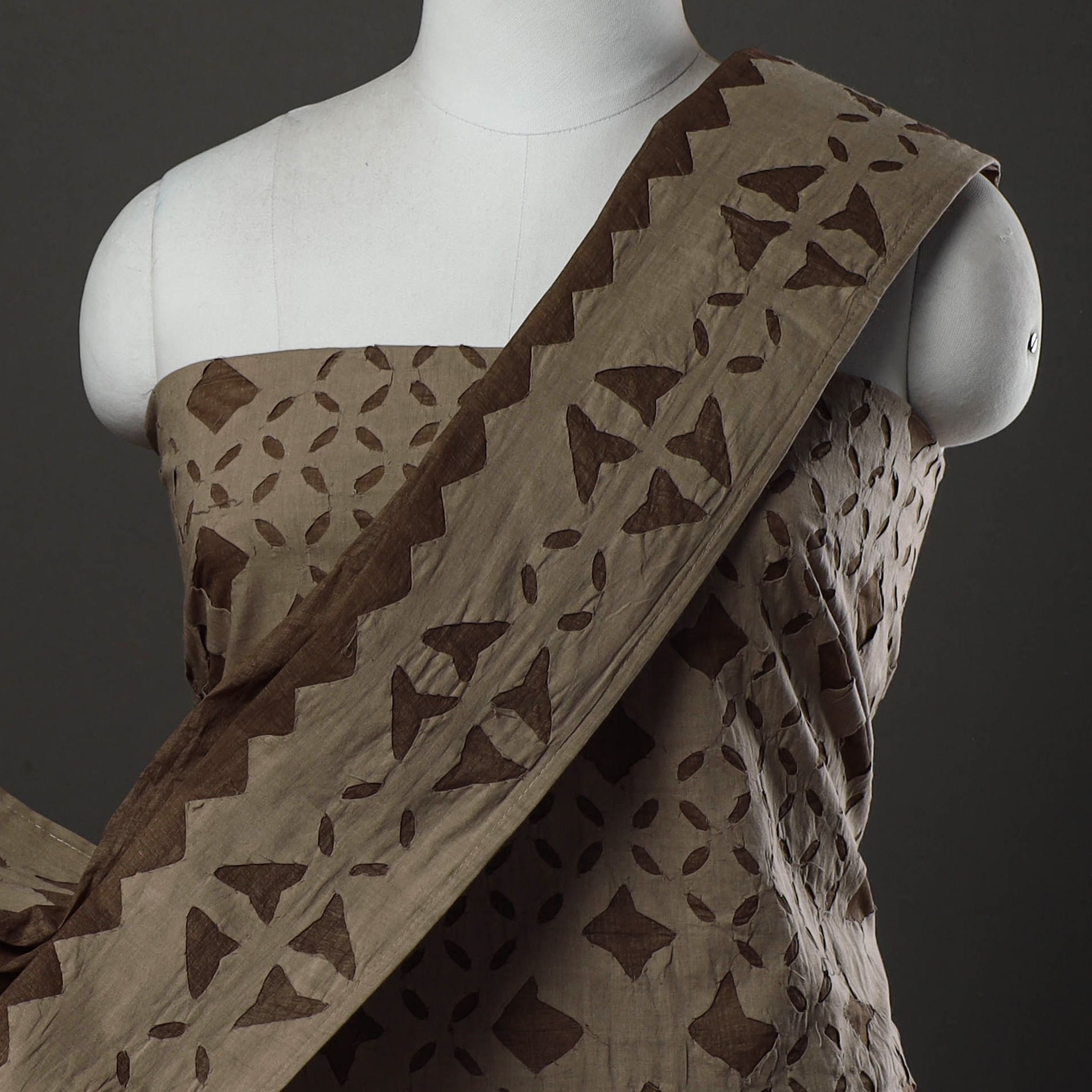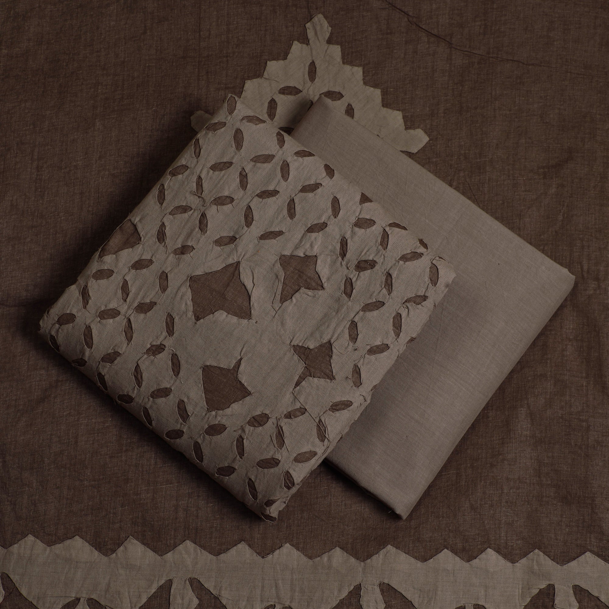 Elevate your wardrobe with our 3pc cotton dress material from Barmer, Rajasthan. Its unique style of applique work does magic in light and shade with beautiful stories and patterns. (The set comes with a plain-color matching bottom/salwar piece and applique work dupatta.) Meticulously hand-stitched and adorned with intricate appliqué cutwork, this fine-quality cotton ensemble exudes timeless elegance. Ideal for special occasions, the set offers versatility to create stunning traditional suits, kurta sets, or mix and match for a personalized, sophisticated look.