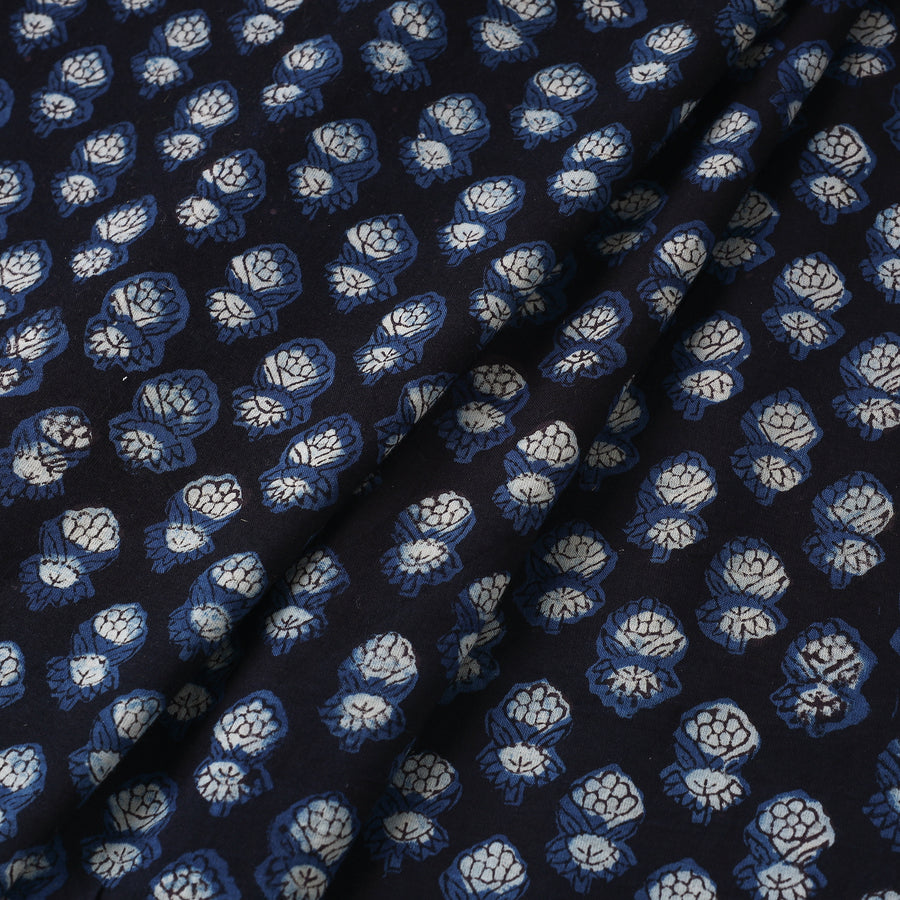 Fine-quality jahota block printed natural dyed pure cotton fabric, made using natural dyes through traditional mud resist process by using hand-carved wooden blocks practiced in Bagru, Rajasthan.