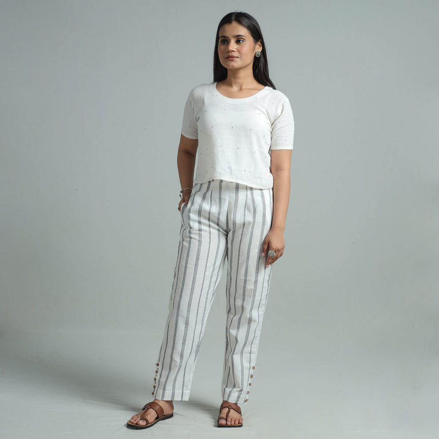 Stay comfortable and stylish in this uniquely designed jacquard weave cotton elasticated waist pant. Made from cotton fabric. The elasticized waist ensures a great fit, while the two side pockets add functionality.