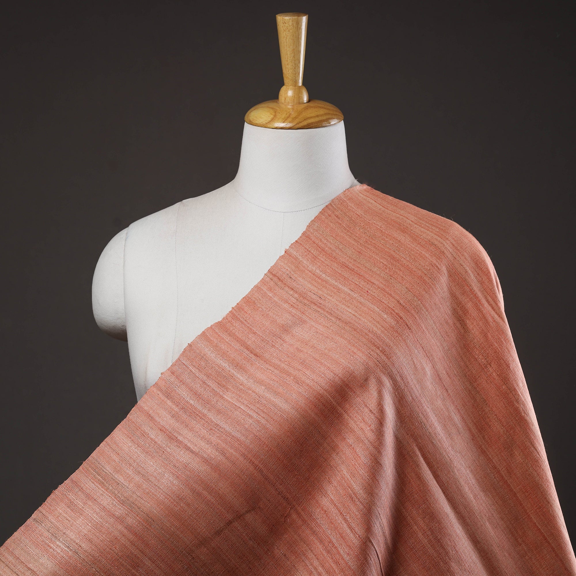 Finest pure handwoven peach pure desi tussar silk fabric from Bhagalpur, Bihar. Tussar silk is known for its unique texture, sheen of silk and feel of cotton A perfect blend of both worlds completely suitable for all weathers. Exquisite collection of pure handwoven tussar silk fabrics that showcases beautifully handwoven textures.