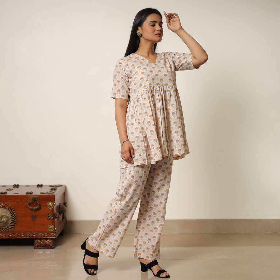 Brown - Sanganeri Block Printed Cotton Co-Ord Set 20