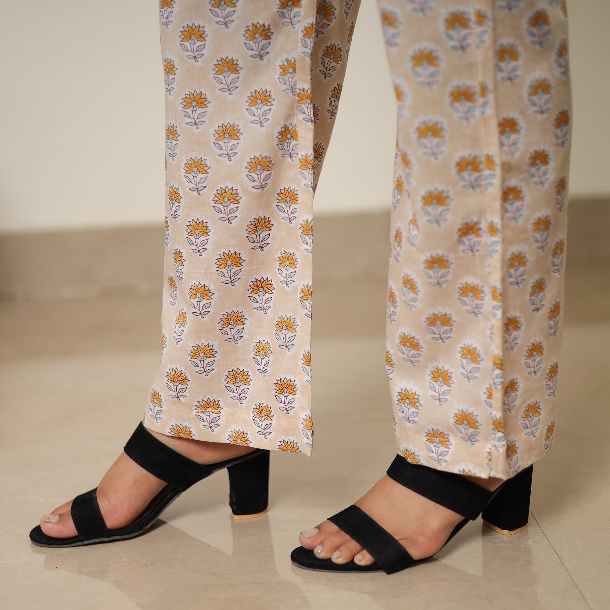Material Stay comfortable and stylish with our sanganeri block-printed cotton two-piece co-ord set. Made from block-printed cotton fabric. The elasticized waist palazzo ensures a great fit, while the two side pockets add functionality to this palazzo. The unique design ensures a beautiful and comfortable fit.