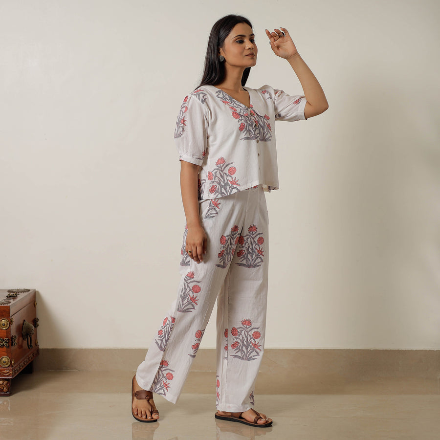 Stay comfortable and stylish with our sanganeri block-printed cotton two-piece co-ord set. Made from block-printed cotton fabric. The elasticized waist palazzo ensures a great fit, while the two side pockets add functionality to this palazzo. The unique design ensures a beautiful and comfortable fit.