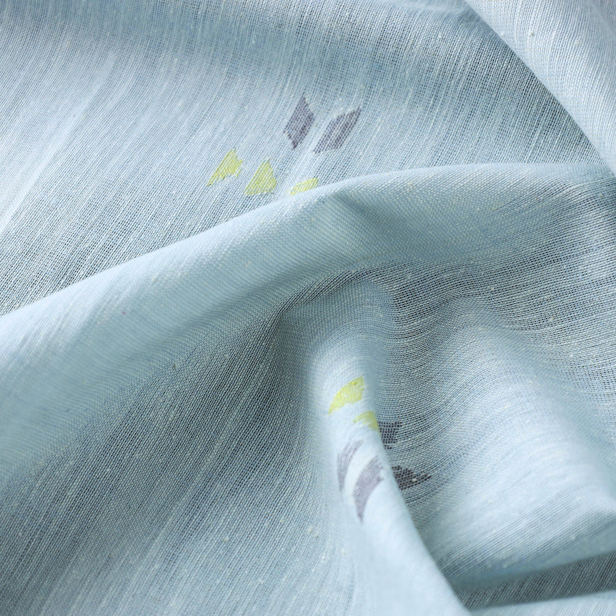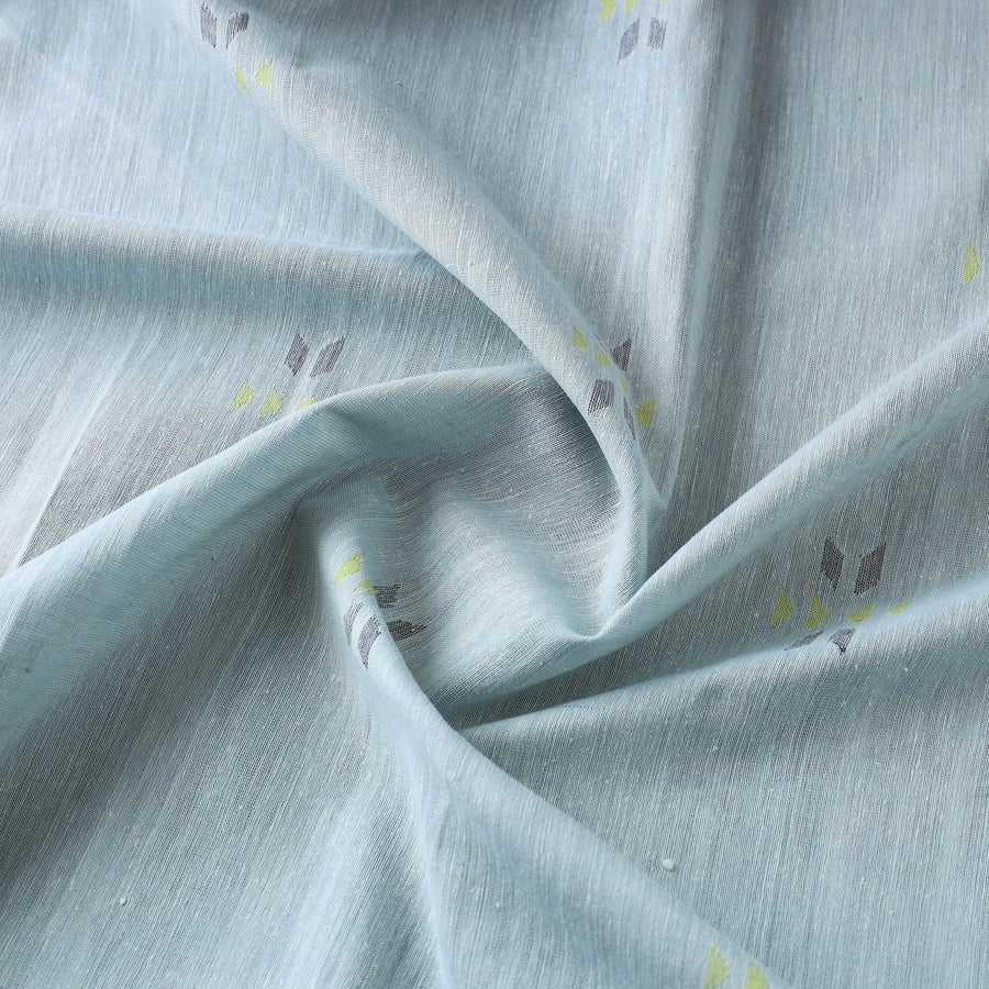 Fine quality srikakulam jamdani buti pure handloom cotton fabric from Andhra Pradesh. Azo free dyes have been used to make this fabric. The base fabric for Jamdani is unbleached cotton yarn and the design is woven using bleached cotton yarns so that a light-and-dark effect is created. The process is extremely time consuming as it involves a tedious form of hand looming. The making of Jamdani involves the supplementary weft technique along with the standard weft technique. With the latter, the base sheer material is made on which thicker threads are used to create designs.