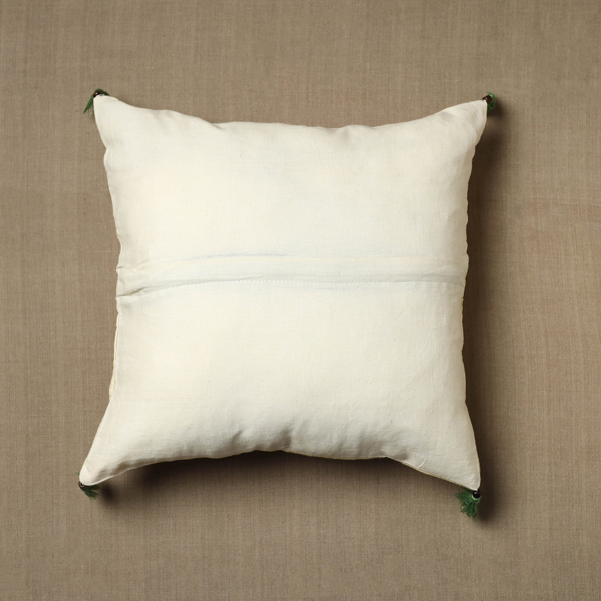 Yellow kantha stitch ikat cotton cushion cover combines intricate hand-stitched patterns and vibrant, resist-dyed Ikat fabric, creating a soft, durable, and visually striking addition to various home decor styles.