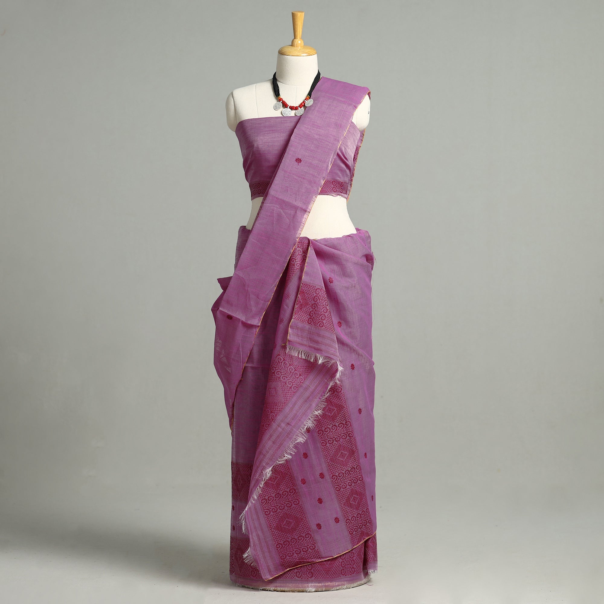 Purple - Assam Traditional Handloom Tussar Mekhela Chador with Blouse Piece 07