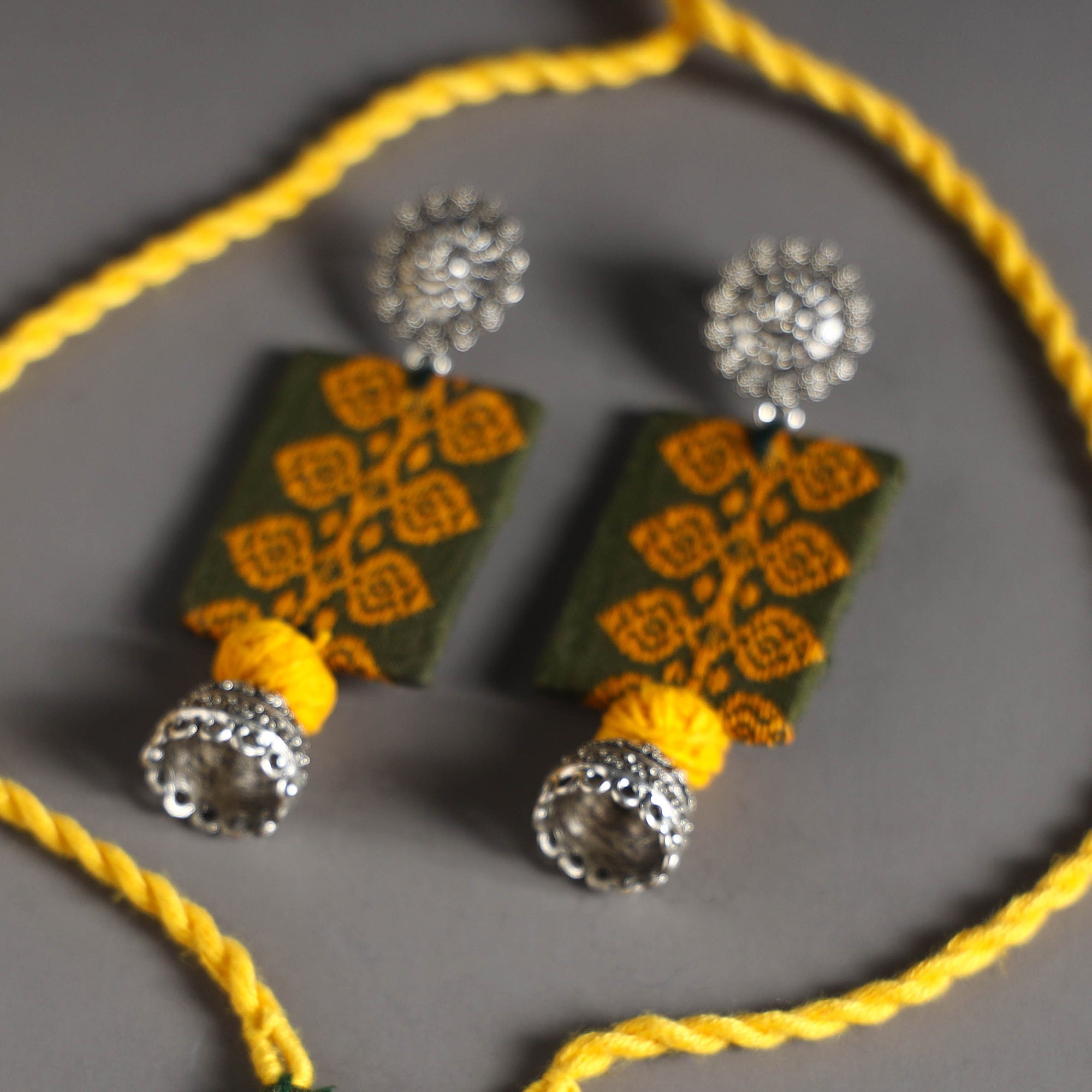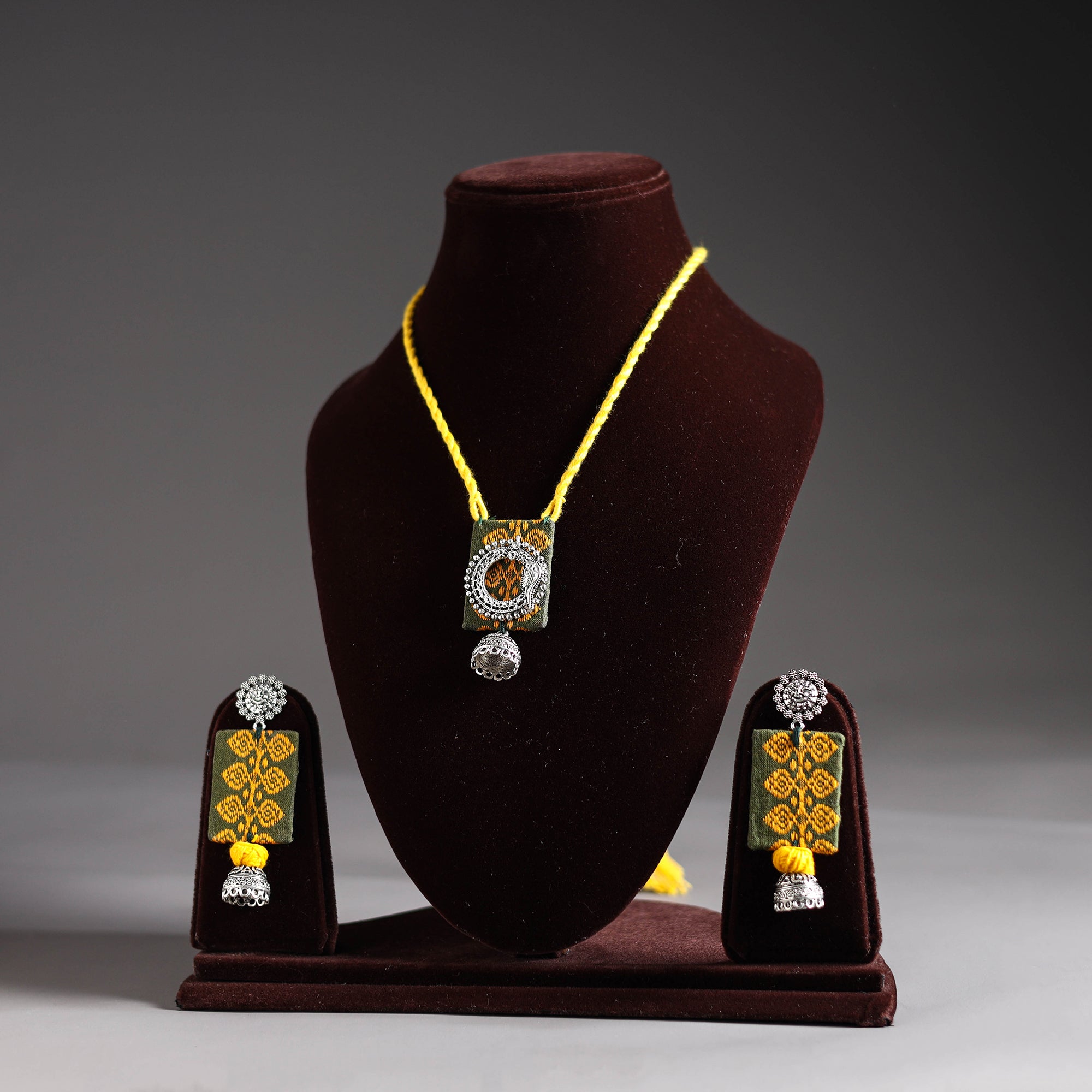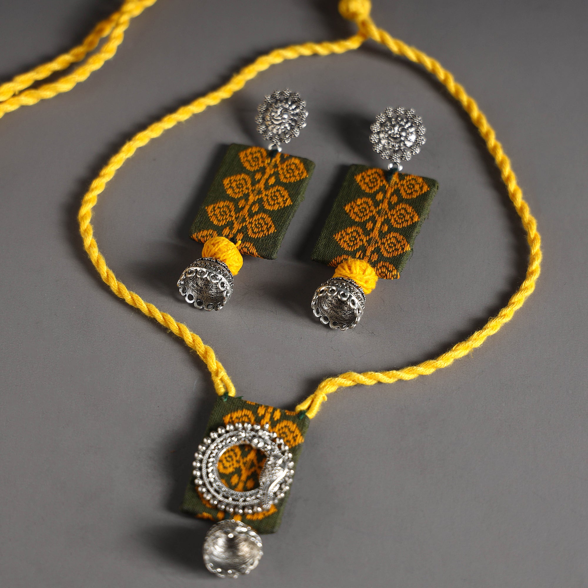Elevate your style with our yellow handcrafted GS fabart necklace set. Intricately designed with fabrics, german silver, and thread work, this set exudes sophistication. Versatile and stylish, effortlessly elevate any outfit by adorning this exquisite necklace set, showcasing a perfect blend of tradition and contemporary charm.