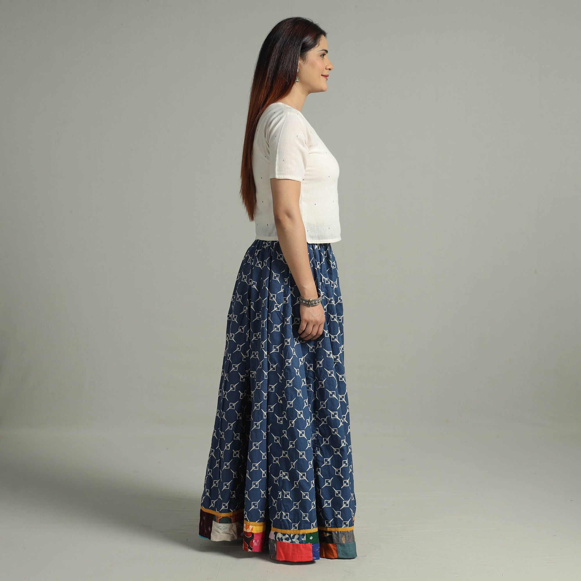 Blue - Indigo Bagru Block Printed 24 Kali Patchwork Cotton Long Skirt 16