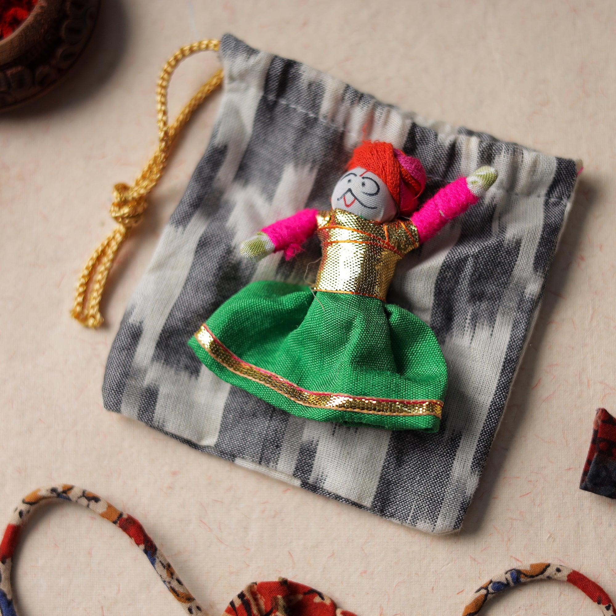 Material  Description A stunning handcrafted flower fabart rakhi adorned with intricate patterns and vibrant colors, perfect for celebrating the bond of love and protection with your sibling. This Rakhi will come with a potli for added charm.