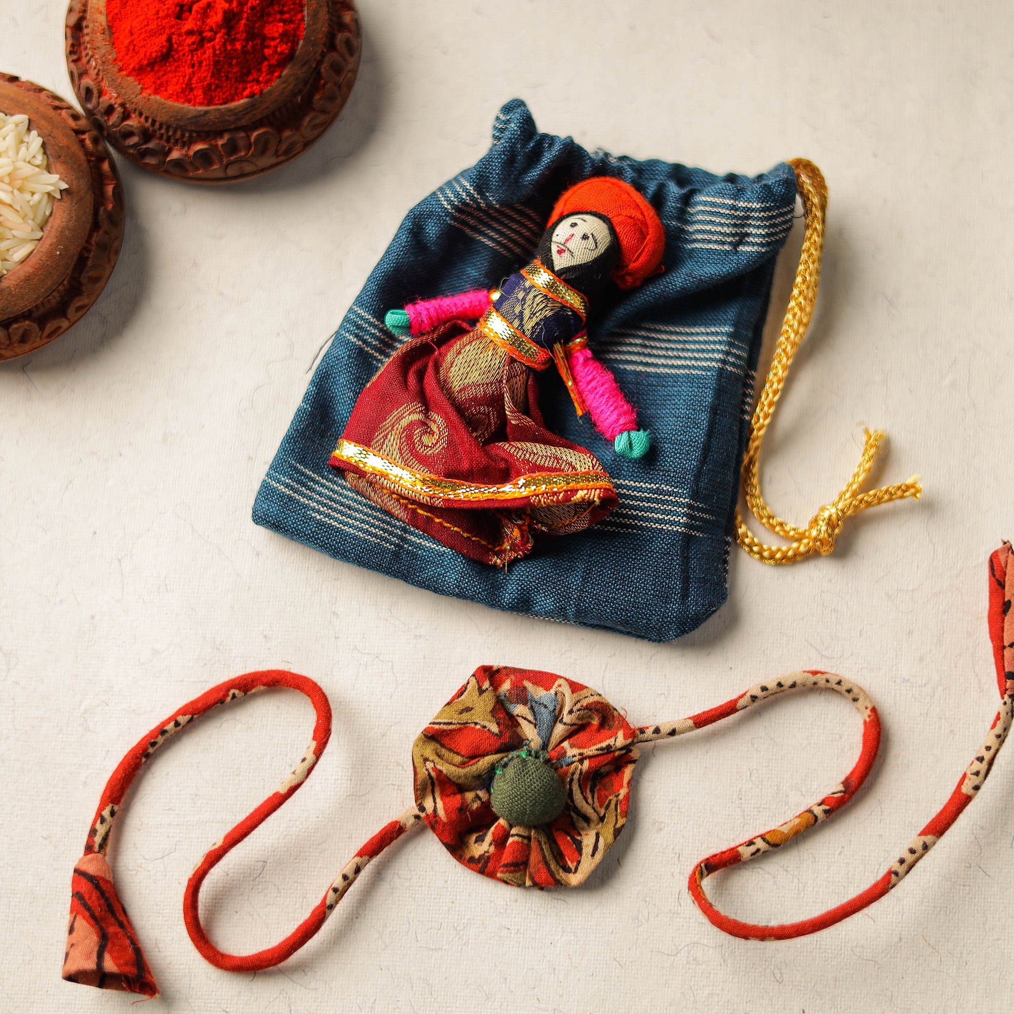 | Material Description | A stunning handcrafted flower fabart rakhi adorned with intricate patterns and vibrant colors, perfect for celebrating the bond of love and protection with your sibling. This Rakhi will come with a potli for added charm. By Purchasing Rakhi from iTokri you have proudly associated yourself with our artisan support initiative which brings happiness to more than 10000 families across India. Thanks so much! |