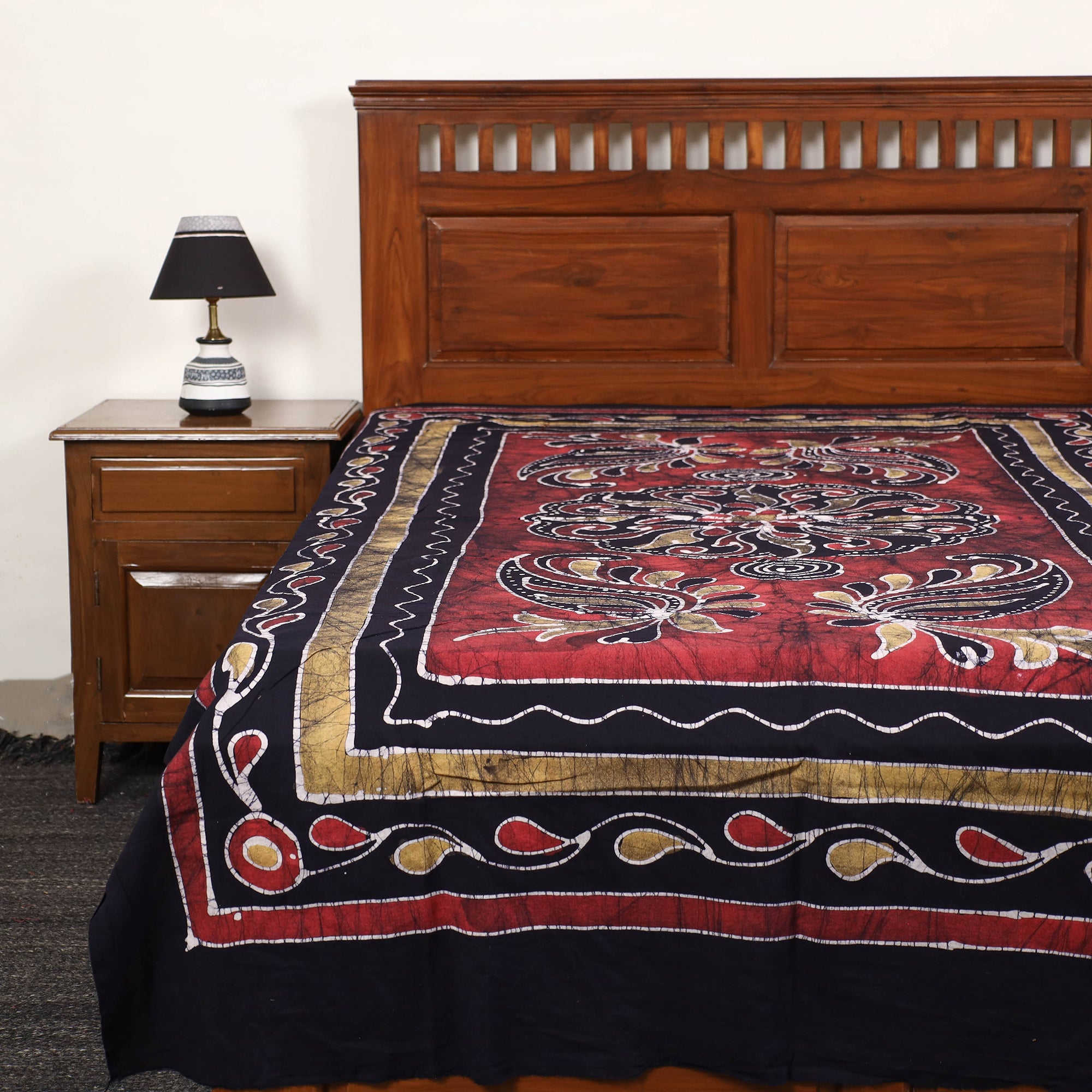 This hand batik printed cotton single bed cover from Ujjain, Madhya Pradesh. Batik is a technique of wax-resist dyeing applied to whole cloth, or cloth made using this technique. Its vibrant patterns and soft texture provide both aesthetic appeal and comfort, ensuring a restful night's sleep while enhancing the overall look of your room.
