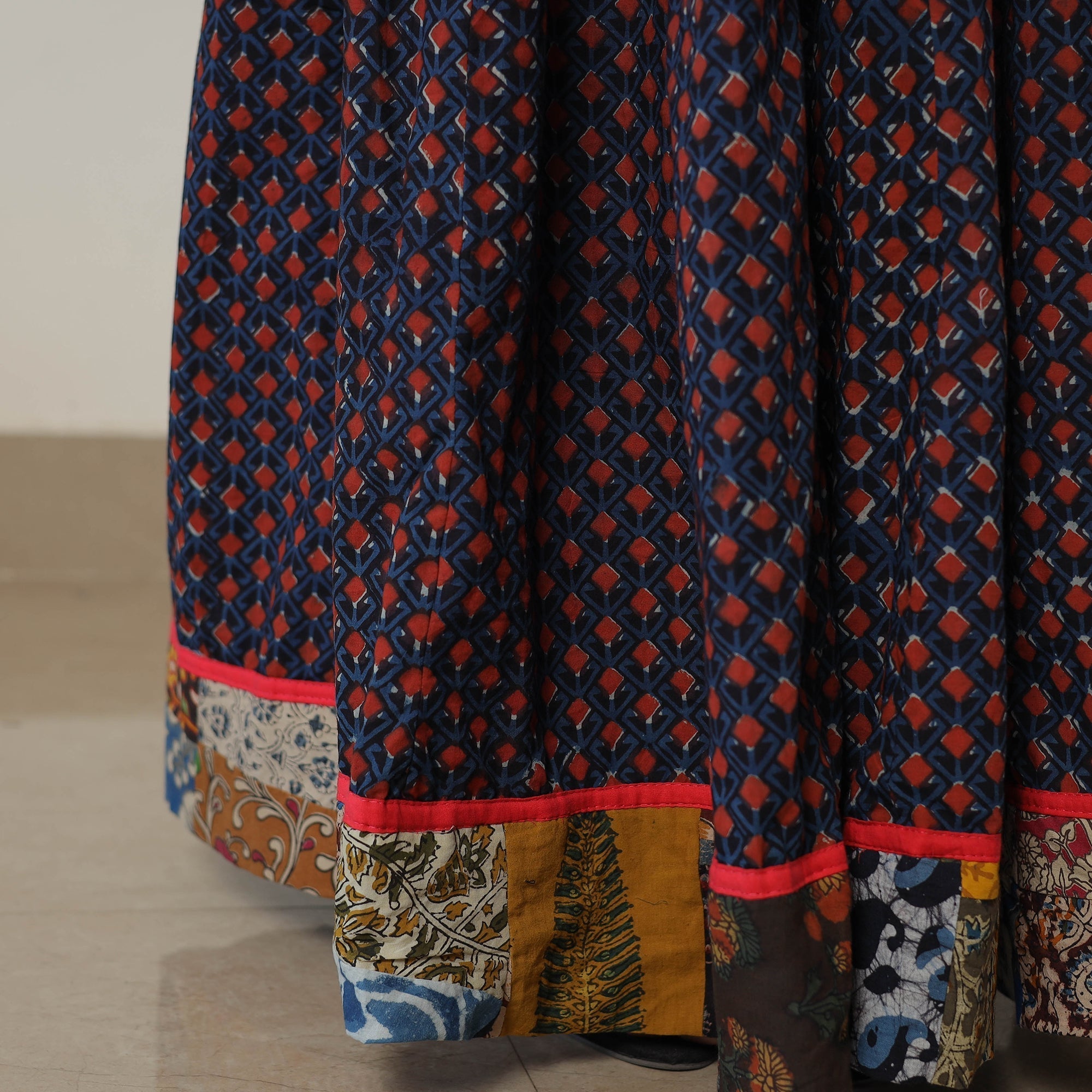 •  Bagru Block Printed 24 Kali Patchwork Cotton Long Skirt 42