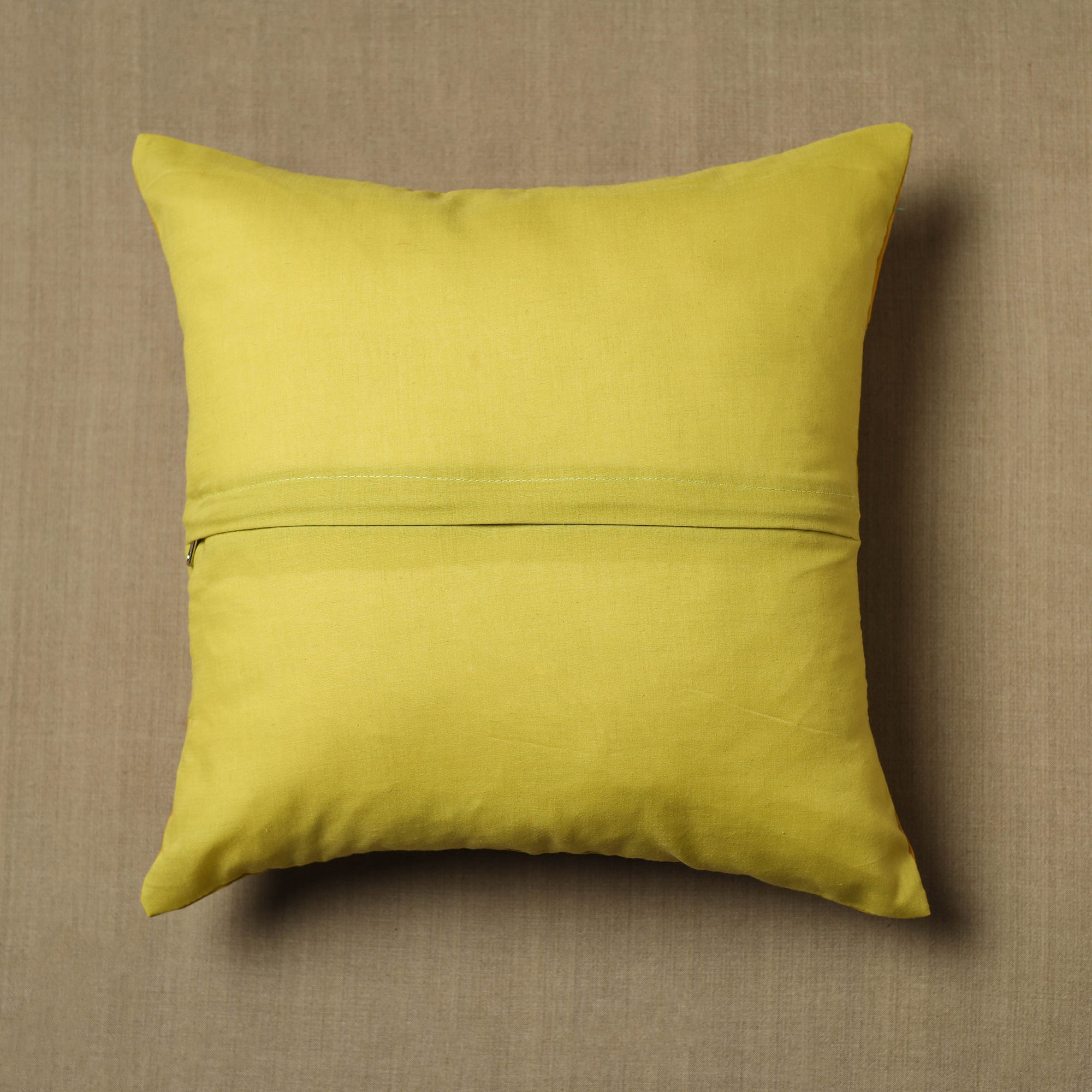 The yellow kanchipuram patchwork cotton cushion cover features traditional patterns and vibrant colors. Crafted from premium cotton, it adds a touch of elegance and cultural charm to any space while offering durability and comfort for everyday use.