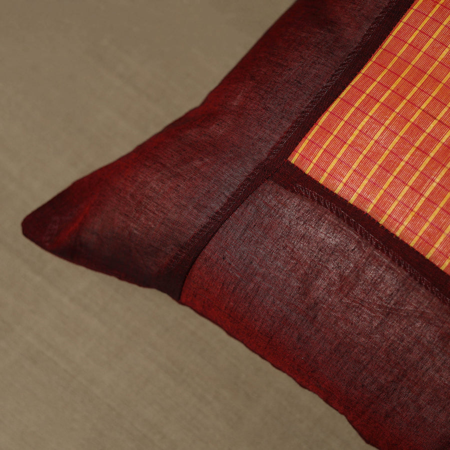 The maroon kanchipuram patchwork cotton cushion cover features traditional patterns and vibrant colors. Crafted from premium cotton, it adds a touch of elegance and cultural charm to any space while offering durability and comfort for everyday use.