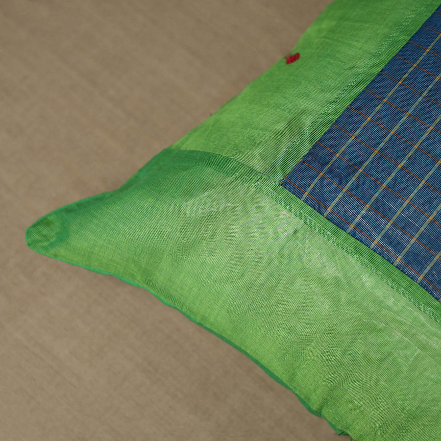 The green kanchipuram patchwork cotton cushion cover features traditional patterns and vibrant colors. Crafted from premium cotton, it adds a touch of elegance and cultural charm to any space while offering durability and comfort for everyday use.