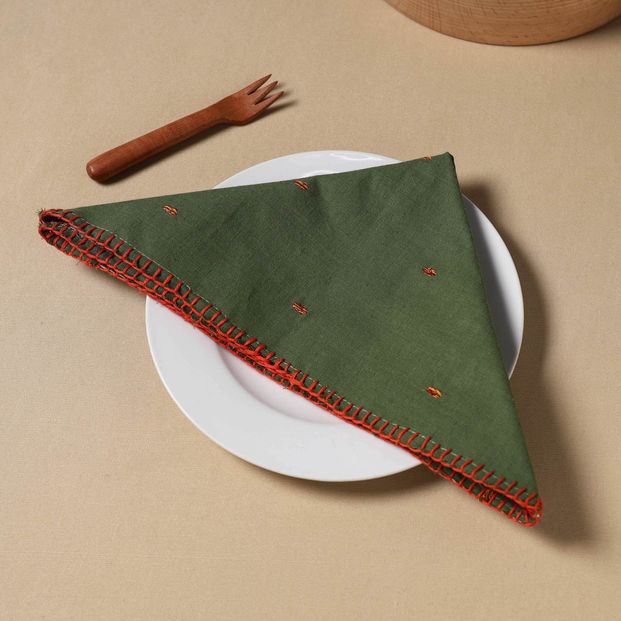 The green jacquard cotton hand embroidery table napkin showcases intricate, hand-embroidered designs on high-quality jacquard cotton, blending traditional craftsmanship with luxurious texture, ideal for an elegant dining experience.