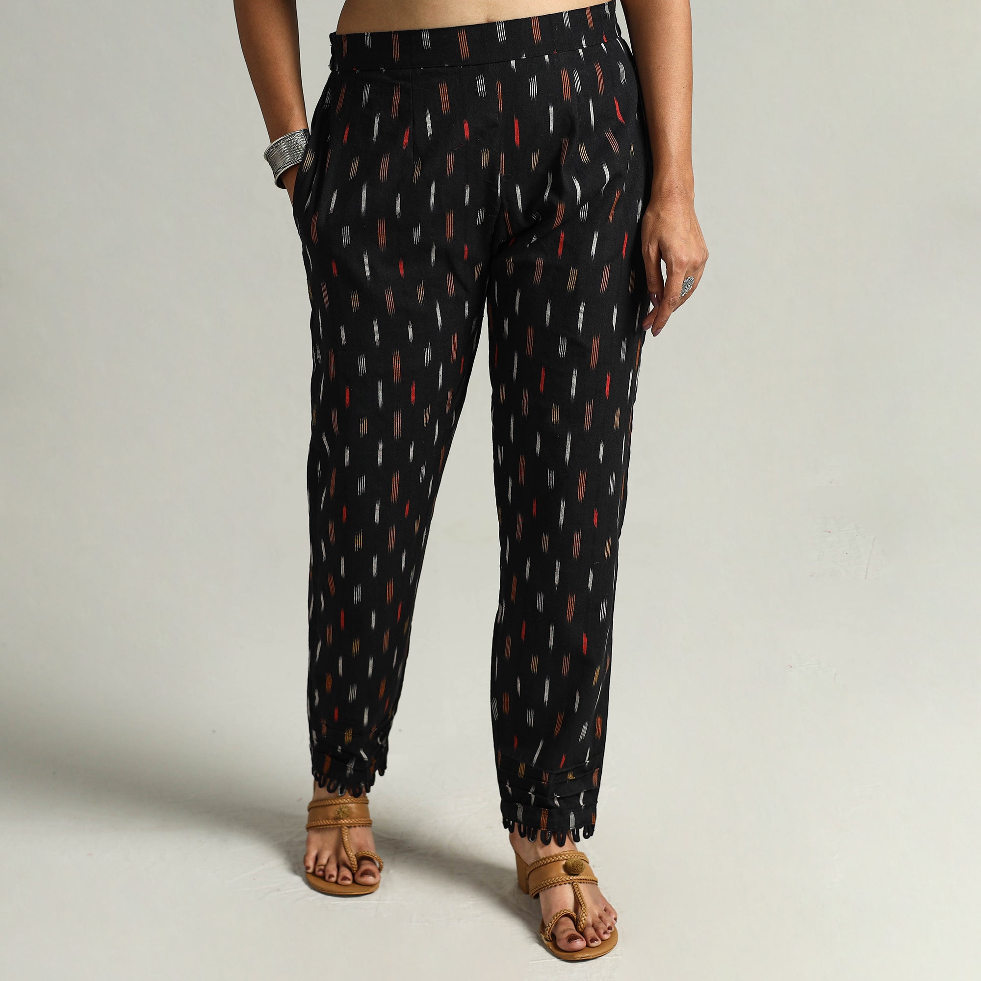 Elevate your style with this stunning pochampally ikat cotton elasticated pant. This cotton pant features an elasticized waist, and two side pockets add functionality to this pant. It makes you feel comfortable and stylish all day. This pant is perfect for your daily outings.