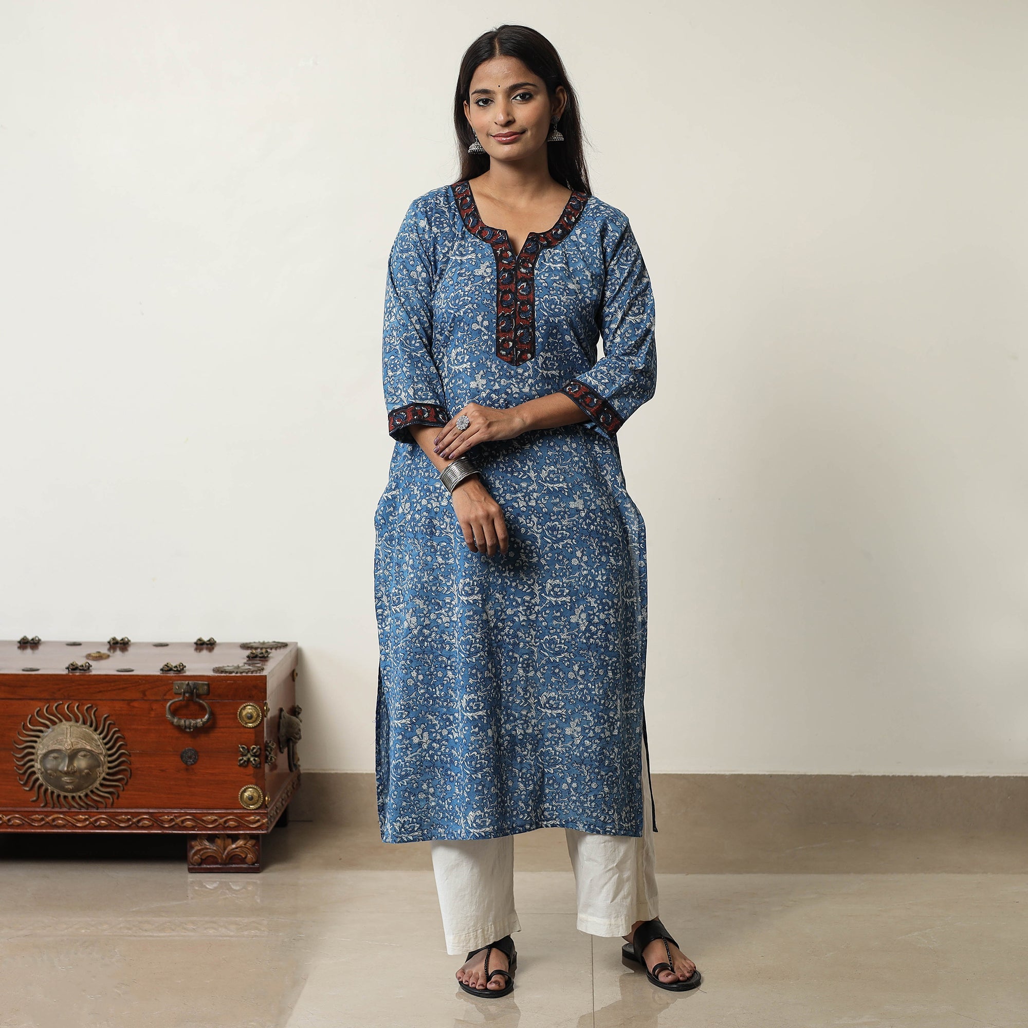 Look and feel beautiful in this uniquely designed jahota block printed cotton straight kurta. This kurta is made using naturally dyed cotton fabric, ensuring a comfortable feel against your skin. The kurta also features a convenient one-side pocket, perfect for carrying small essentials. It's an ideal choice for both casual and festive occasions.