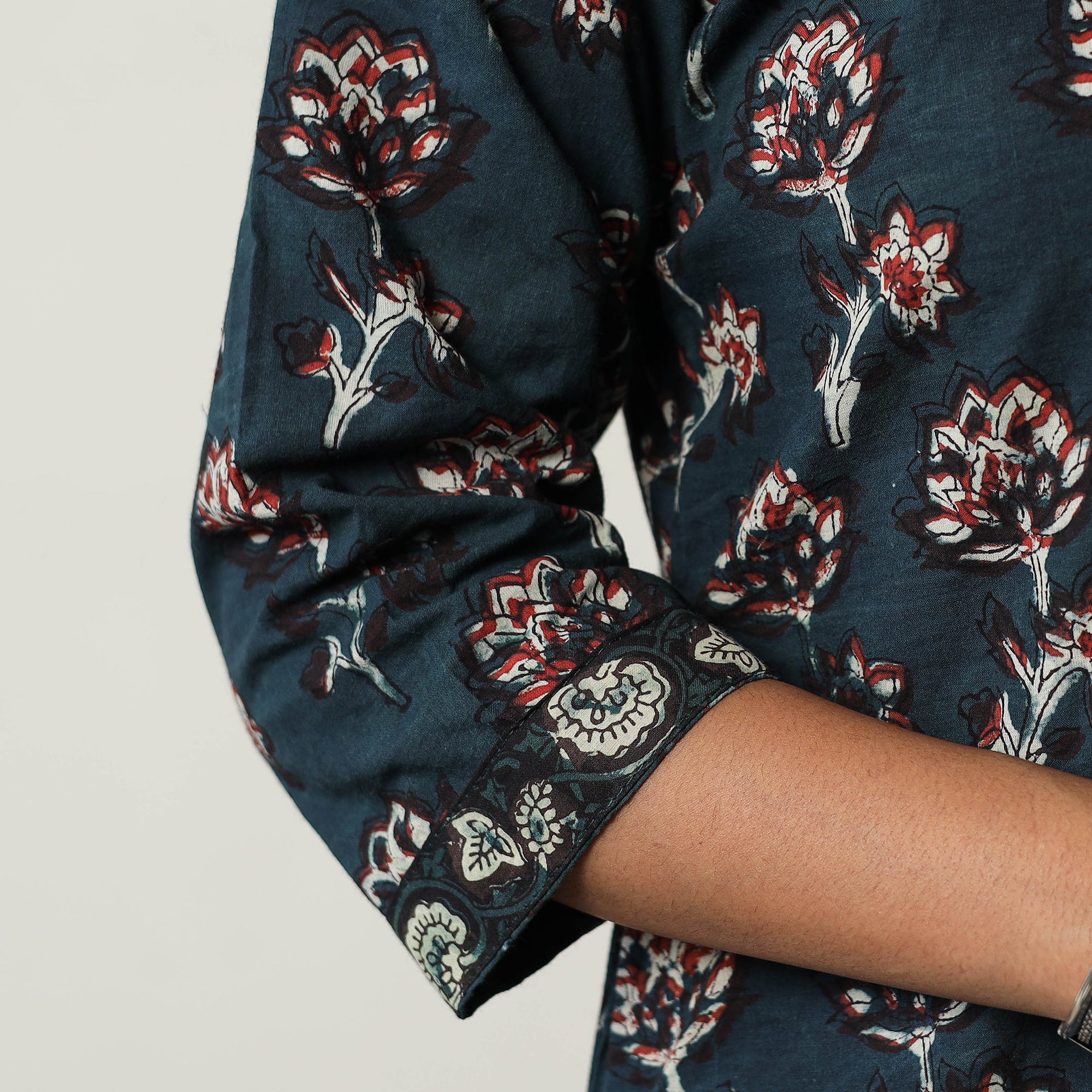 The intricate art of jahota block printing, a centuries old technique using hand carved wooden blocks and natural dyes adorns the fabrics with unique patterns. Handcrafted by skilled artisans Originating from the small village of Jahota in Rajasthan.