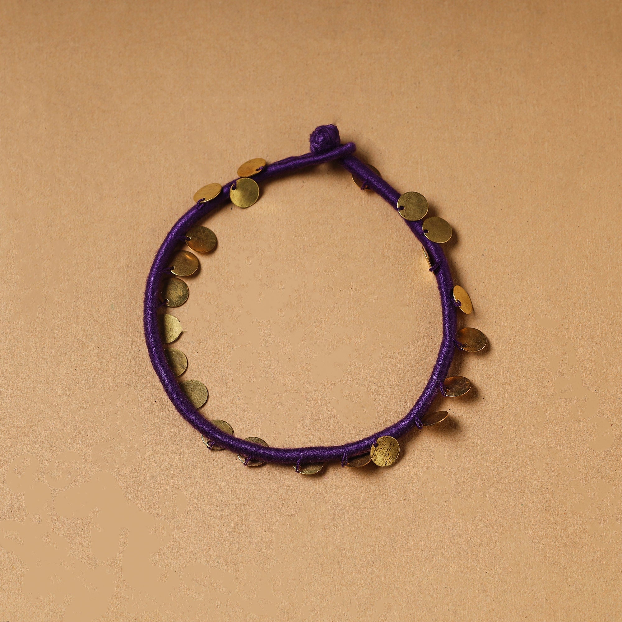 Enhance your traditional look with this handcrafted purple patwa thread & sequin work anklet. This patwa anklet is made from thick weaves of thread with sequin work, handcrafted by the master craftsman Kailash Patwa. Patwa is a thread craft that originated in Rajasthan and is now practiced in parts of the state.
