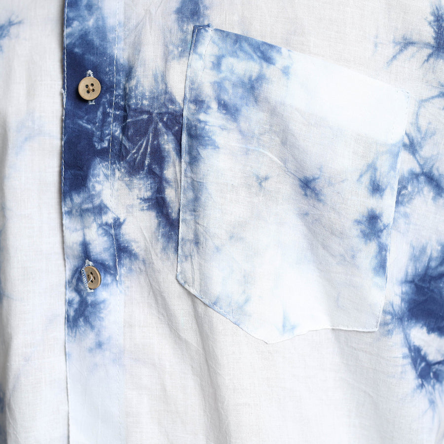 This shibori tie-dye cotton men's half-sleeve shirt is a perfect blend of style and comfort. The shirt's soft and breathable cotton fabric ensures all-day comfort. The crisp wooden buttons add a touch of natural charm, while the patch pocket on the front offers convenience and practicality.