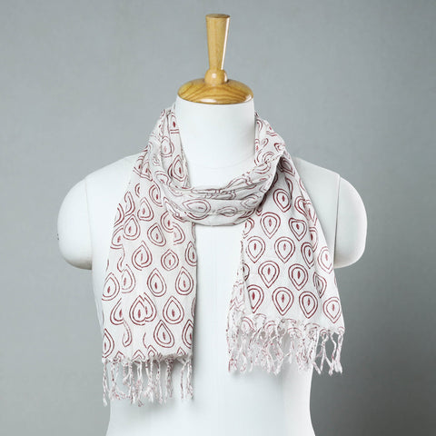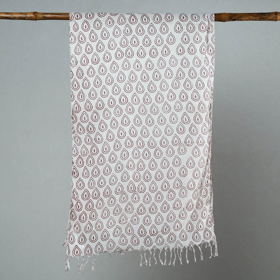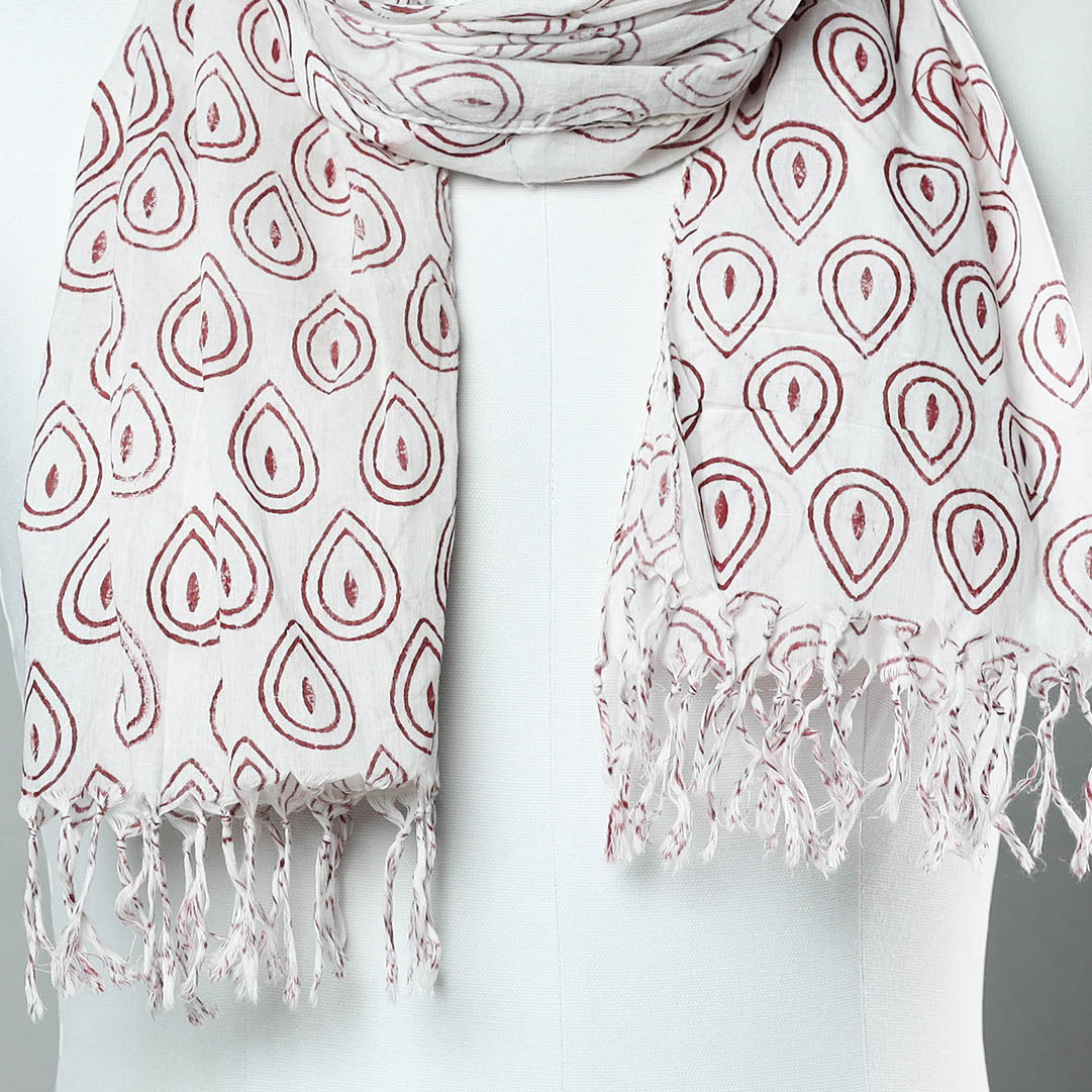 Fine quality delicate sanganeri block printed cotton stole with tassels. Made using VAT dyes, this stole features intricate floral patterns, also known as 'Buttas', which are exclusive to sanganeri prints. The elaborate detailing of the flowers and petals showcases the artistry of this hand-block printing technique originating from Sanganer, Rajasthan.