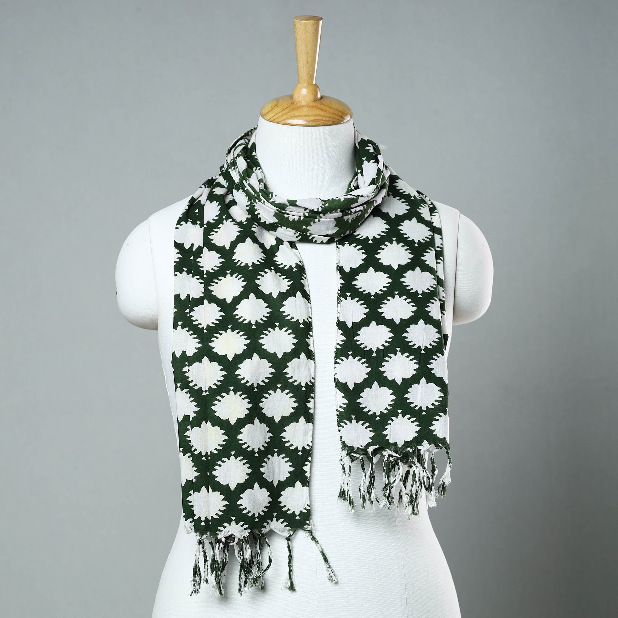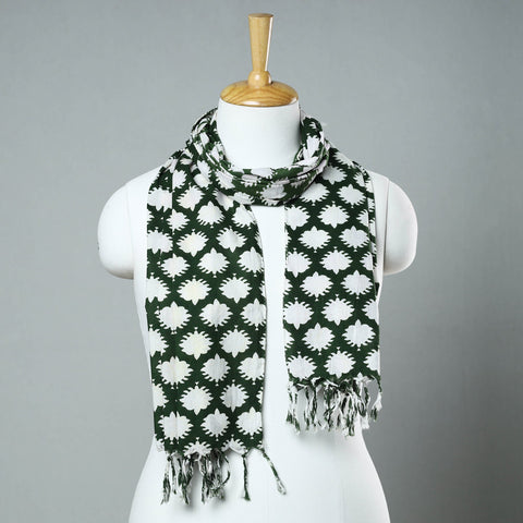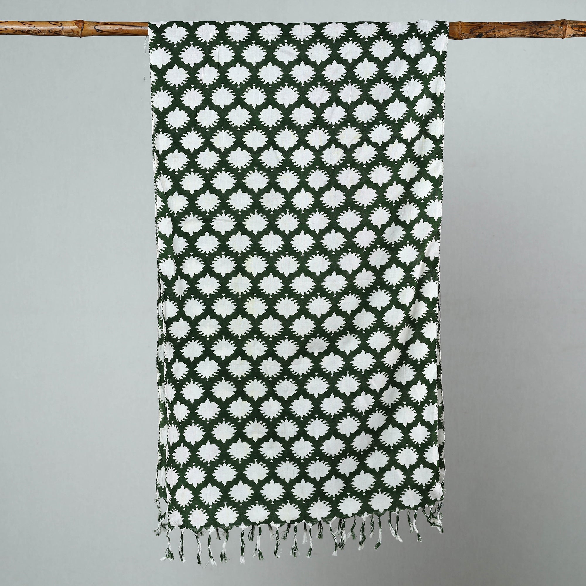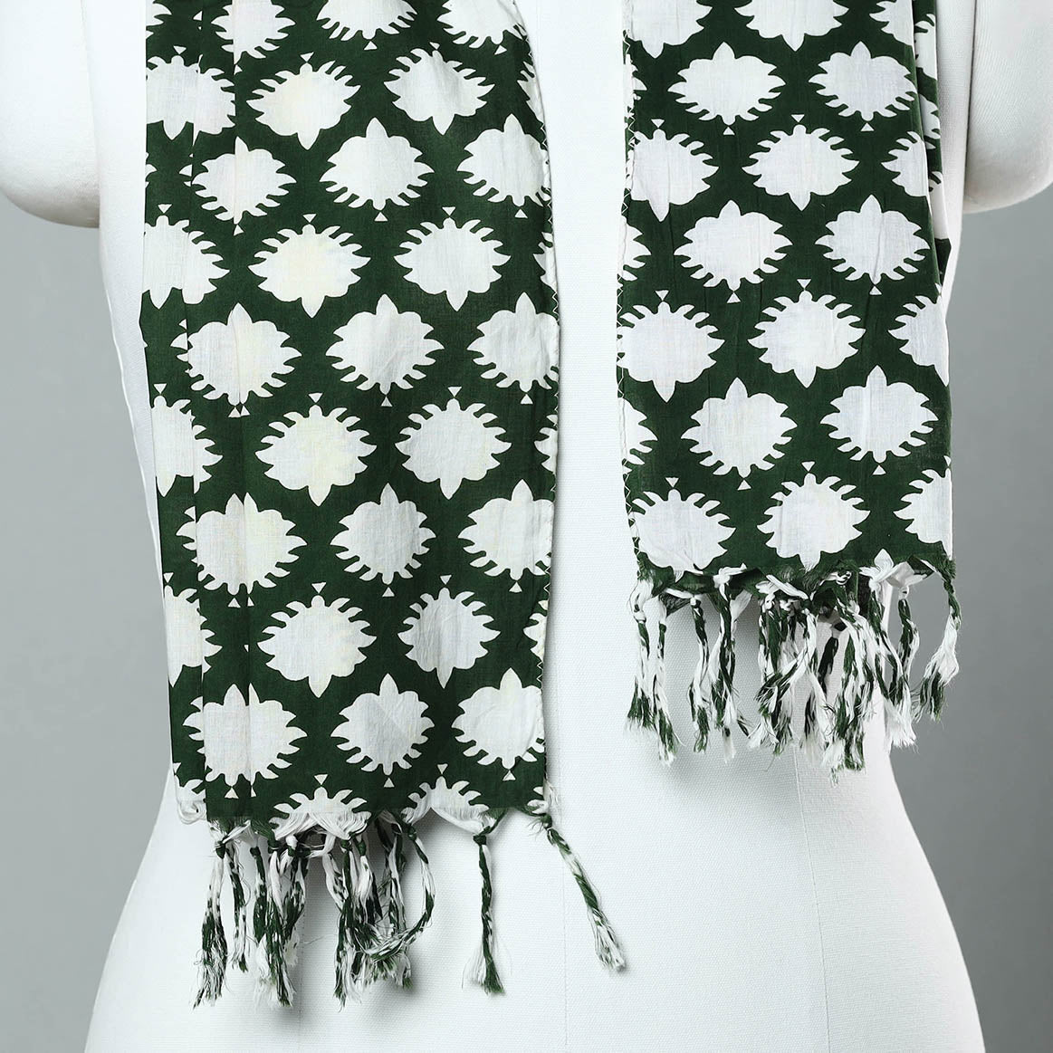 Green - Sanganeri Block Printed Cotton Stole with Tassels 03