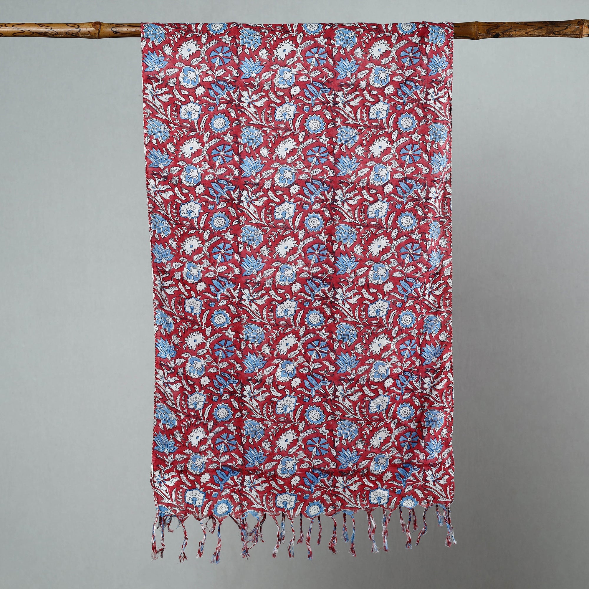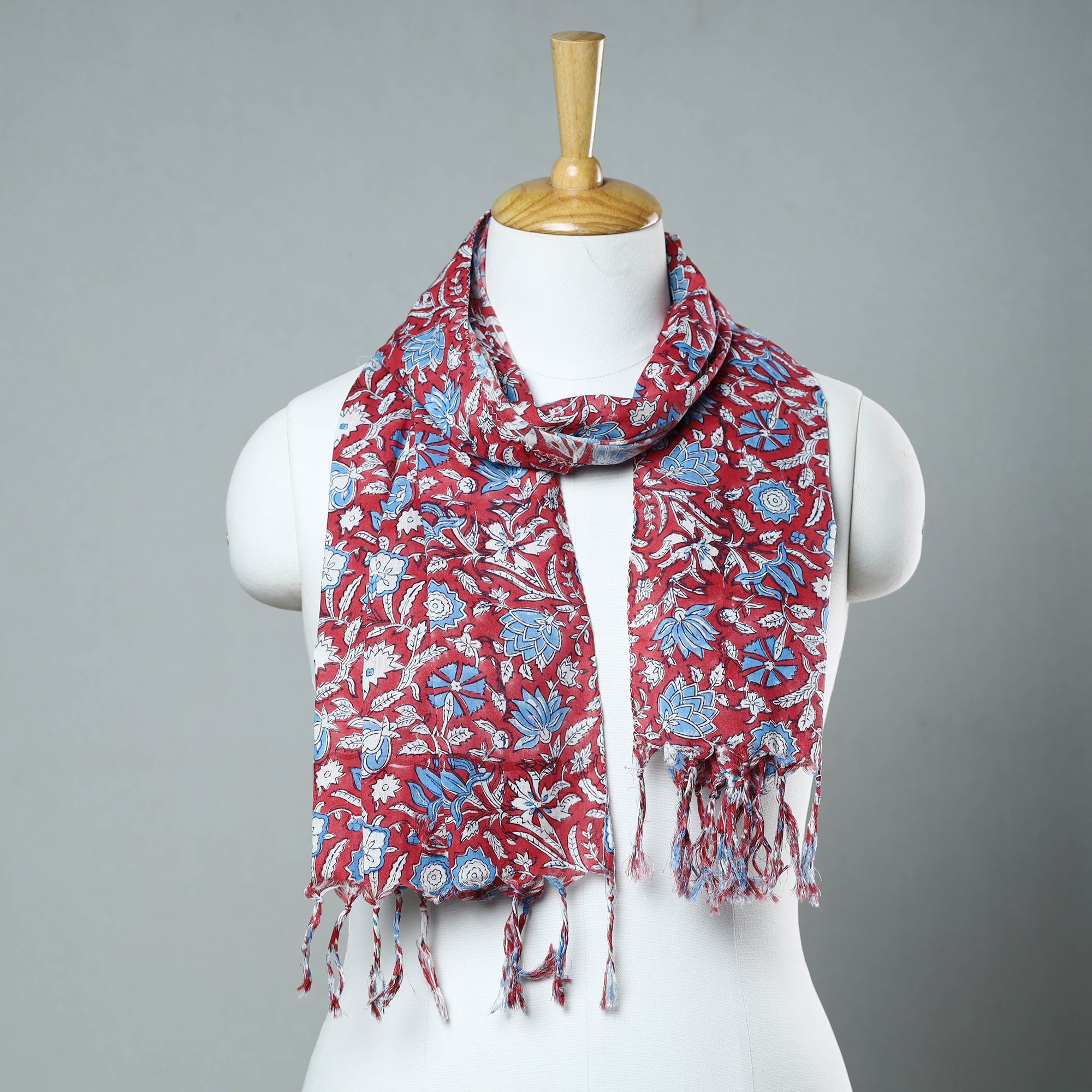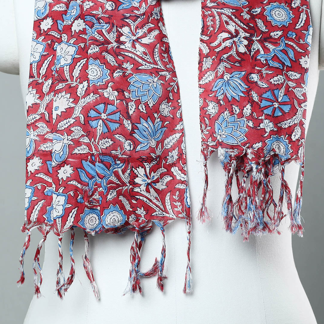 Red - Sanganeri Block Printed Cotton Stole with Tassels 63