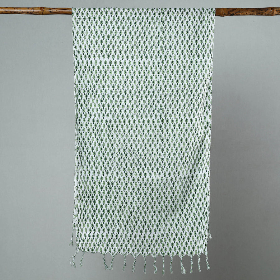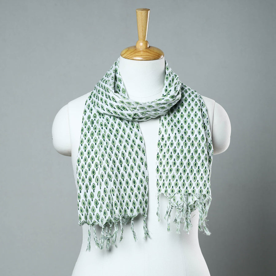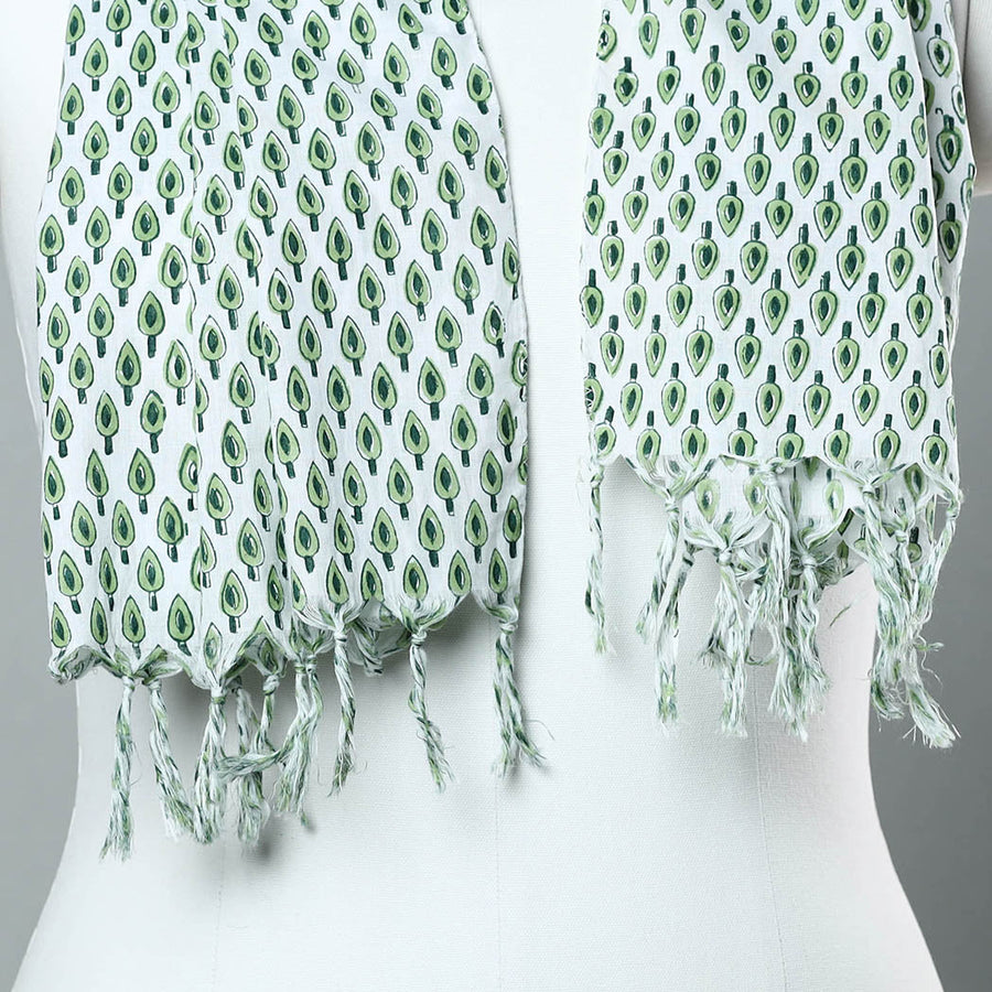 Fine quality delicate sanganeri block printed cotton stole with tassels. Made using VAT dyes, this stole features intricate floral patterns, also known as 'Buttas', which are exclusive to sanganeri prints. The elaborate detailing of the flowers and petals showcases the artistry of this hand-block printing technique originating from Sanganer, Rajasthan.