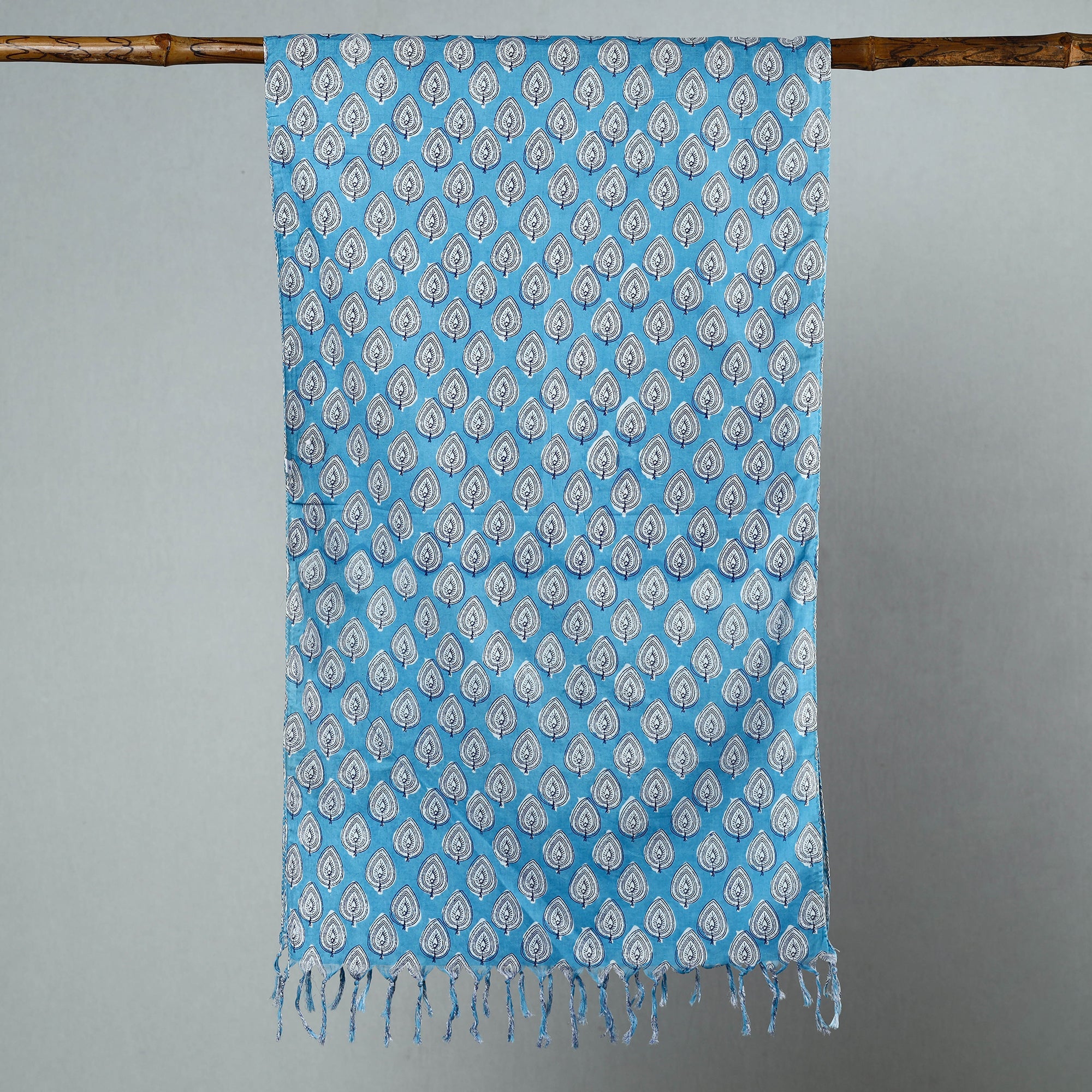 Blue - Sanganeri Block Printed Cotton Stole with Tassels 89