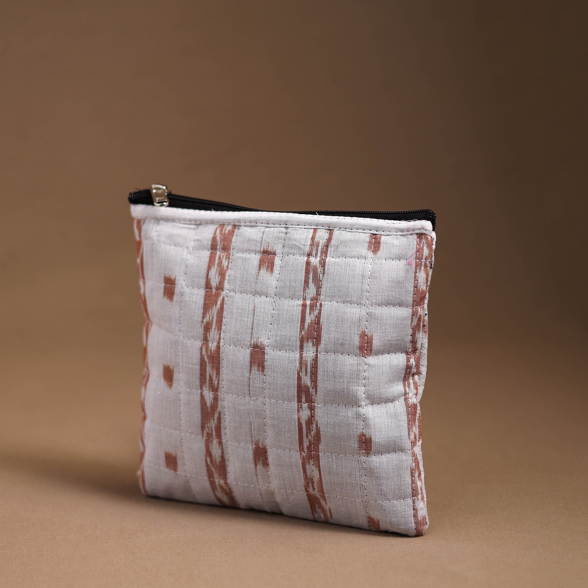 This handmade quilted cotton multipurpose utility pouch. This utility pouch with a zip-lock main closure, providing ample space for your essentials. The foam layer lining ensures durability and protection.