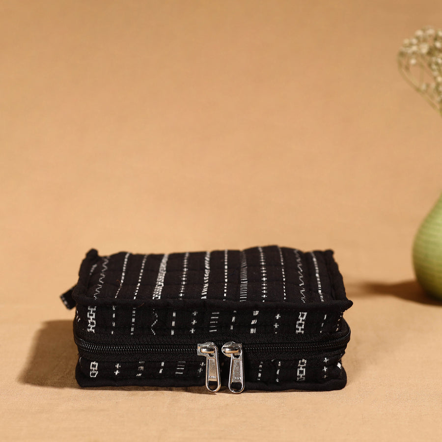 | Material | Black handmade 4-pocket cotton jewelry bag. It has four spacious pockets that provide ample room for storing and organizing your favorite jewelry pieces. |