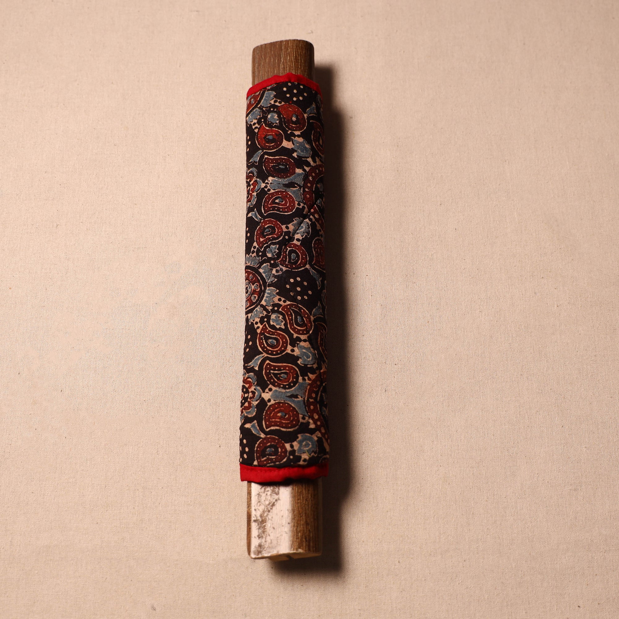 Fine-quality black handmade fridge handle cover made from cotton fabric and foam. Crafted with care, each cover features vibrant colors and intricate designs. Protect your fridge handles while infusing your space with the beauty of Indian craftsmanship.