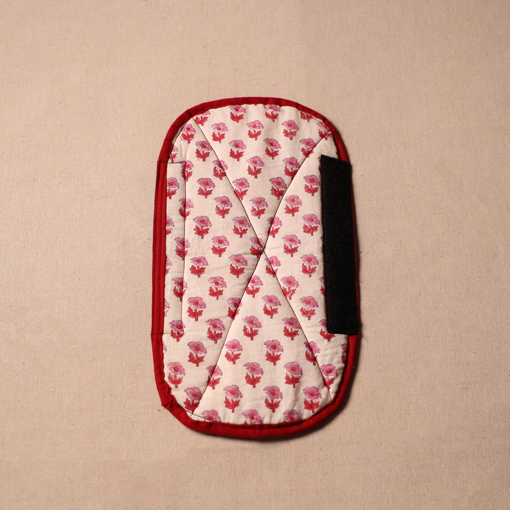 Fine-quality beige handmade fridge handle cover made from cotton fabric and foam. Crafted with care, each cover features vibrant colors and intricate designs. Protect your fridge handles while infusing your space with the beauty of Indian craftsmanship.
