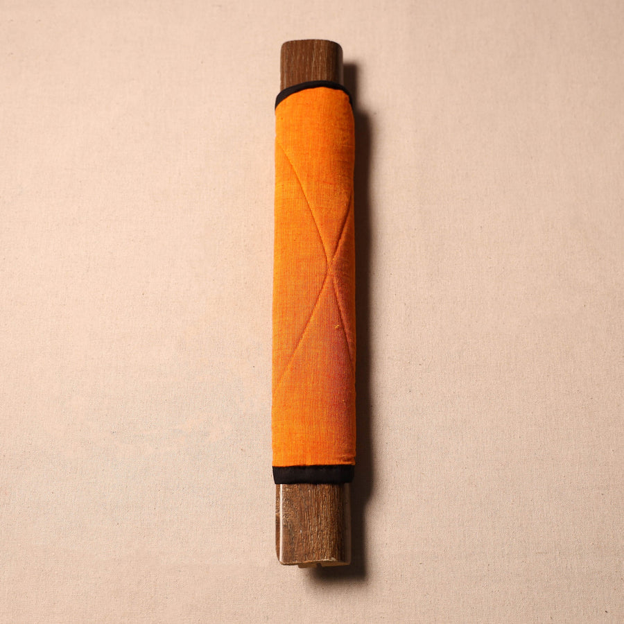 Fine-quality orange handmade fridge handle cover made from cotton fabric and foam. Crafted with care, each cover features vibrant colors and intricate designs. Protect your fridge handles while infusing your space with the beauty of Indian craftsmanship.