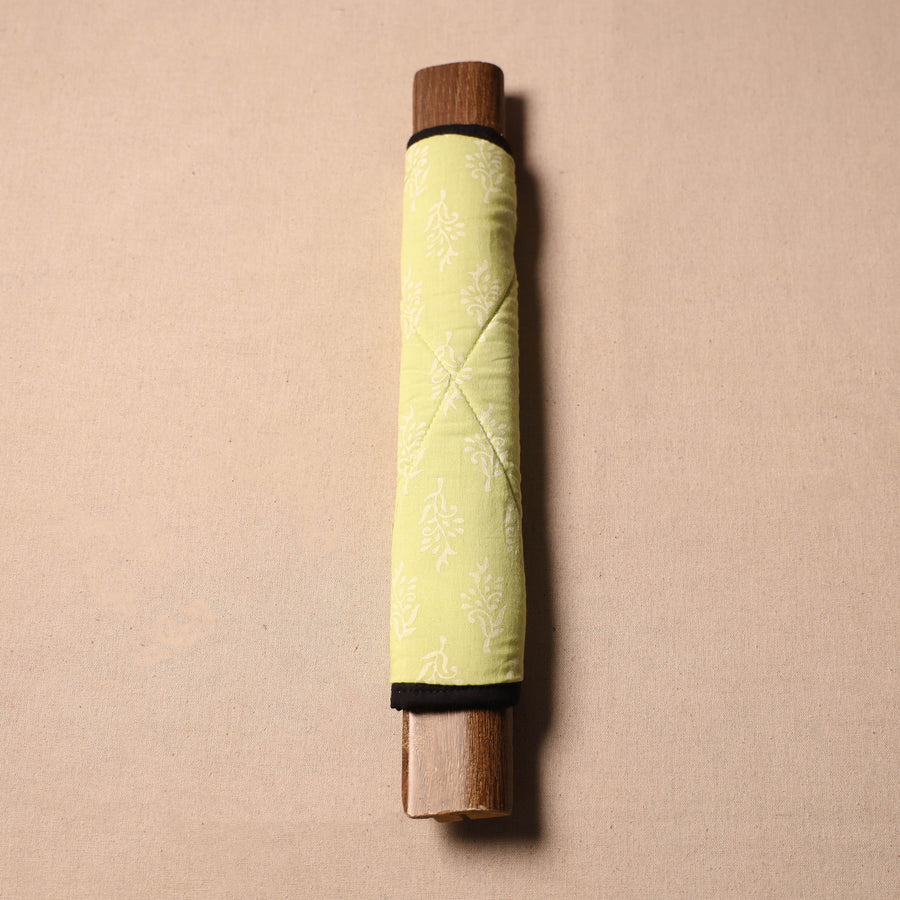Fine-quality yellow handmade fridge handle cover made from cotton fabric and foam. Crafted with care, each cover features vibrant colors and intricate designs. Protect your fridge handles while infusing your space with the beauty of Indian craftsmanship.