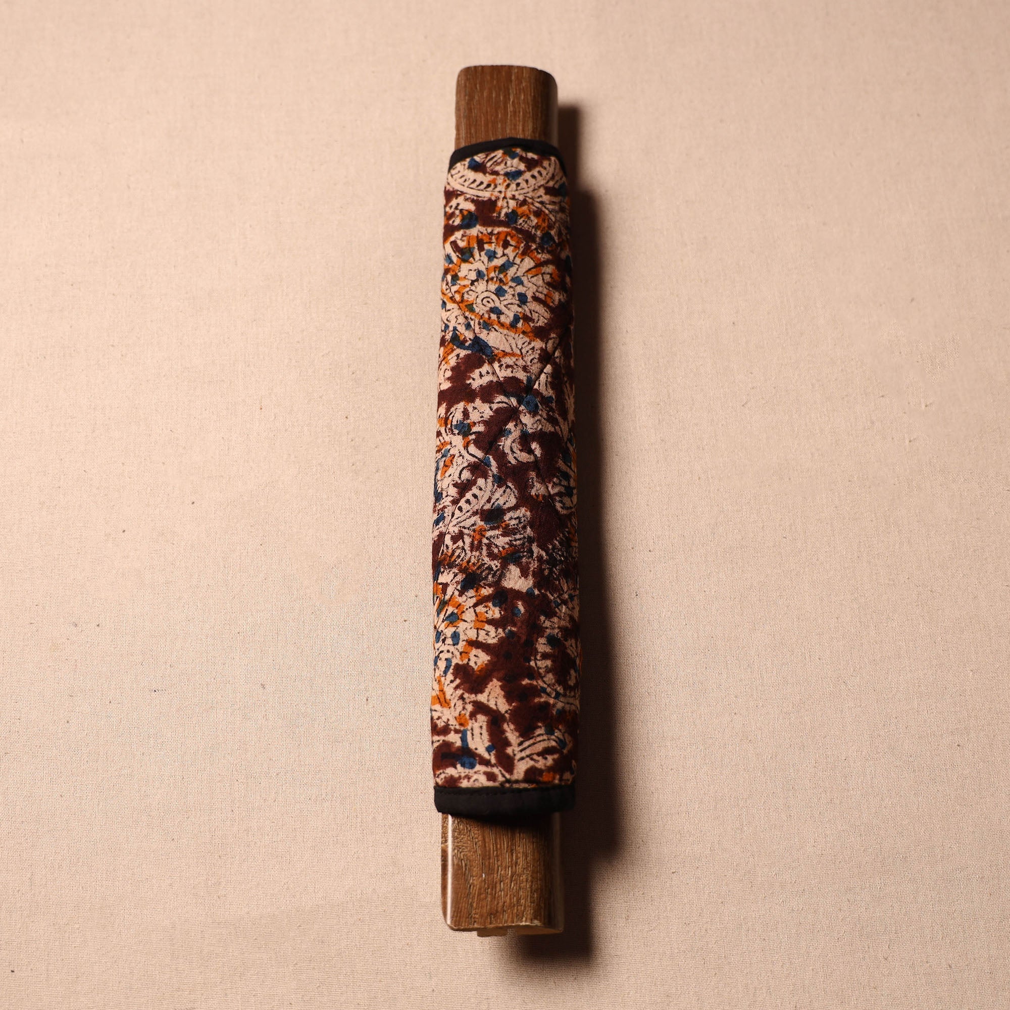 Fine-quality beige handmade fridge handle cover made from cotton fabric and foam. Crafted with care, each cover features vibrant colors and intricate designs. Protect your fridge handles while infusing your space with the beauty of Indian craftsmanship.