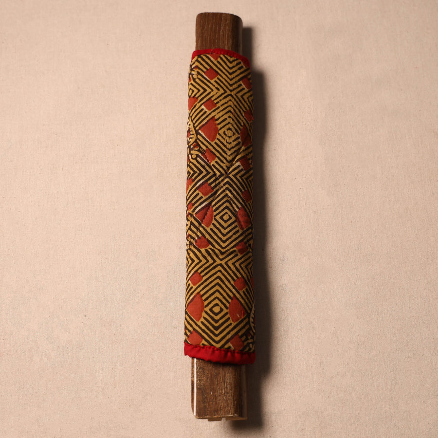 Fine-quality yellow handmade fridge handle cover made from cotton fabric and foam. Crafted with care, each cover features vibrant colors and intricate designs. Protect your fridge handles while infusing your space with the beauty of Indian craftsmanship.