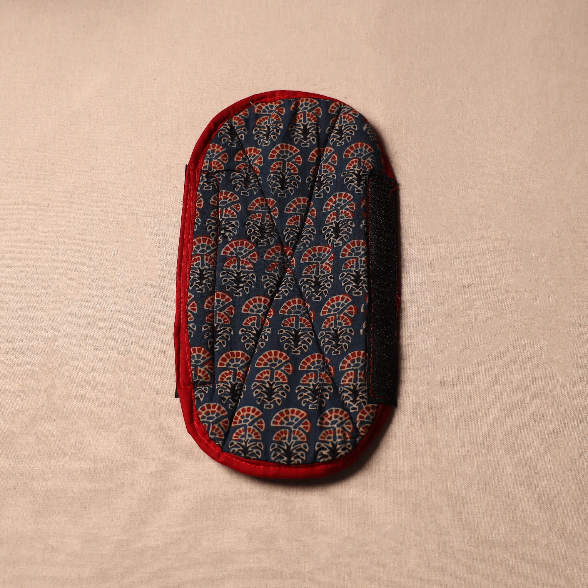Fine-quality blue handmade fridge handle cover made from cotton fabric and foam. Crafted with care, each cover features vibrant colors and intricate designs. Protect your fridge handles while infusing your space with the beauty of Indian craftsmanship.