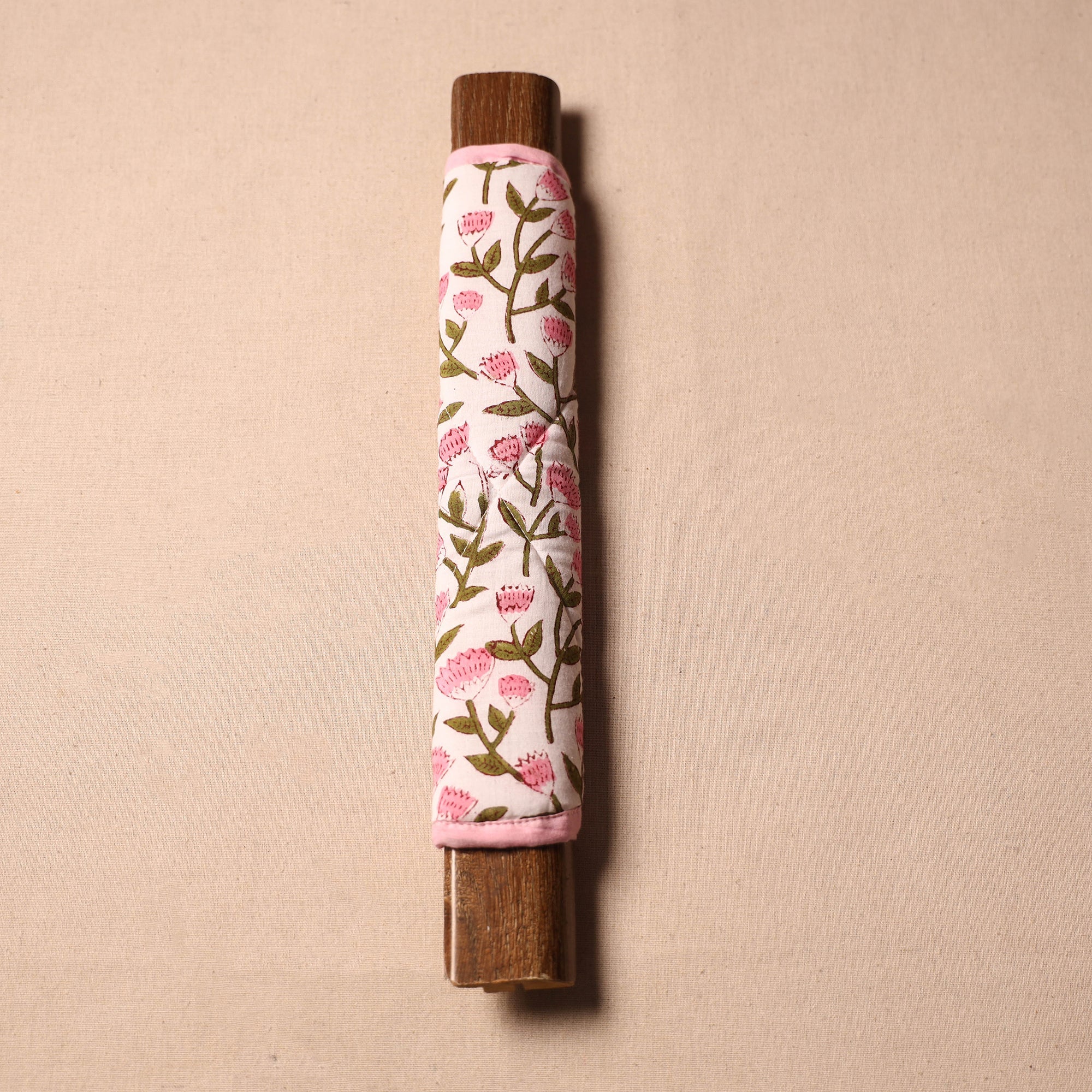 Fine-quality pink handmade fridge handle cover made from cotton fabric and foam. Crafted with care, each cover features vibrant colors and intricate designs. Protect your fridge handles while infusing your space with the beauty of Indian craftsmanship.