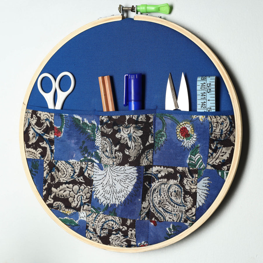 Handcrafted embroidery hoop patchwork wall decor is a unique and beautiful addition to any home, offering a stylish way to decorate your home. This hoop wall decor is made from mixed cotton fabrics, handcrafted by skilled artisans. Featuring three functional pockets for added practicality and charm for organizing essentials or displaying decor.