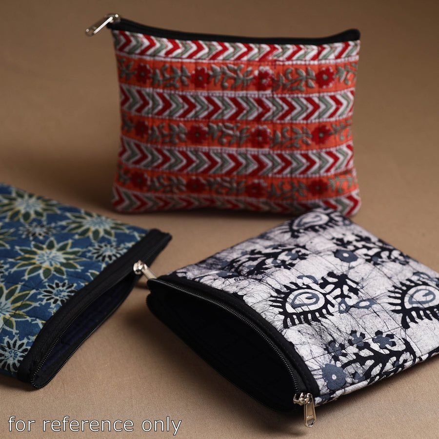 This handmade quilted cotton multipurpose utility pouch. This utility pouch with a zip-lock main closure, providing ample space for your essentials. The foam layer lining ensures durability and protection.