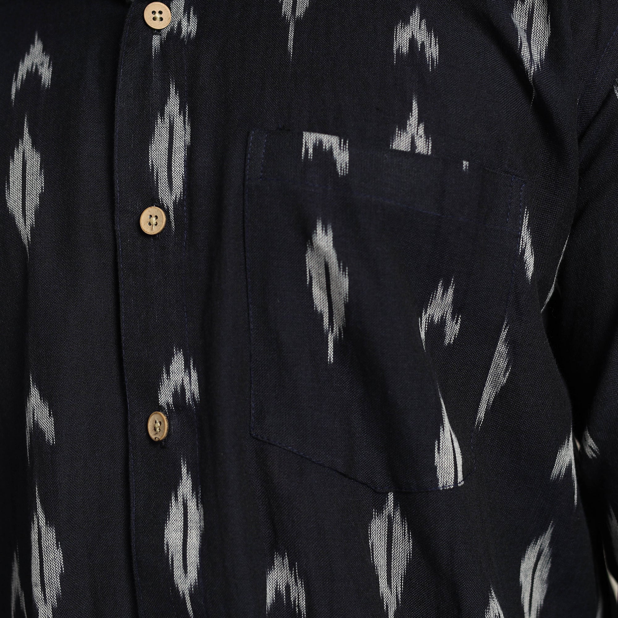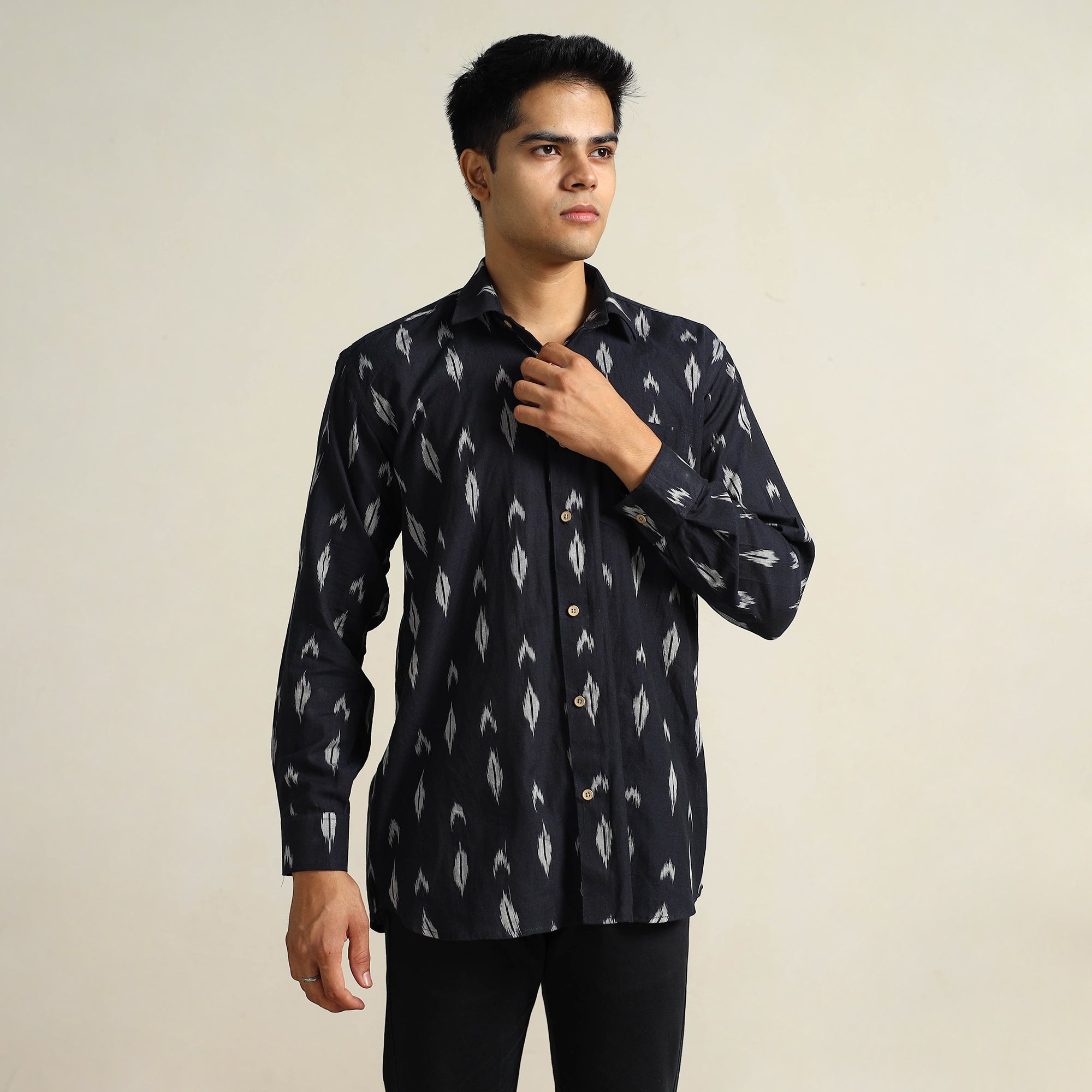 • Black - pochampally ikat weave cotton men full sleeve shirt