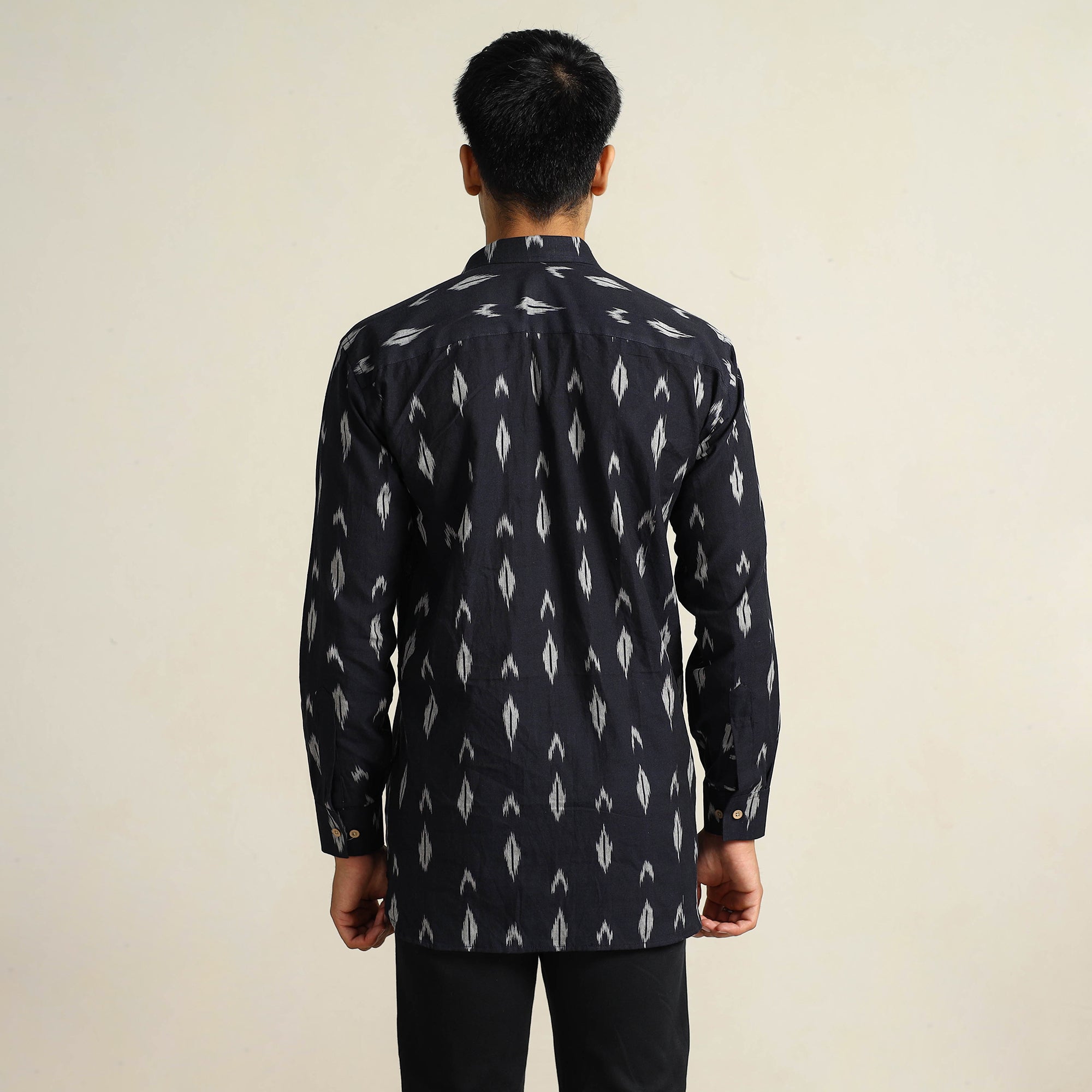 • Black Pochampally Ikat Weave Cotton Men Full Sleeve Shirt
