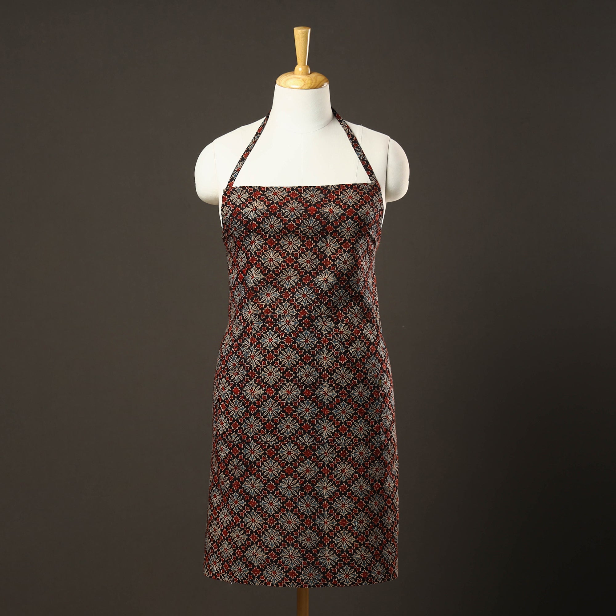 This black ajrakh block-printed cotton apron with pocket is a versatile and stylish addition to your cooking and baking ensemble! This apron is perfect for protecting your clothing from splatters and spills while you work in the kitchen. With a convenient pocket at the front, this apron allows you to keep all your essential kitchen tools close at hand. The adjustable neck strap and waist ties ensure a comfortable and secure fit for all body types, making this apron suitable for both men and women.