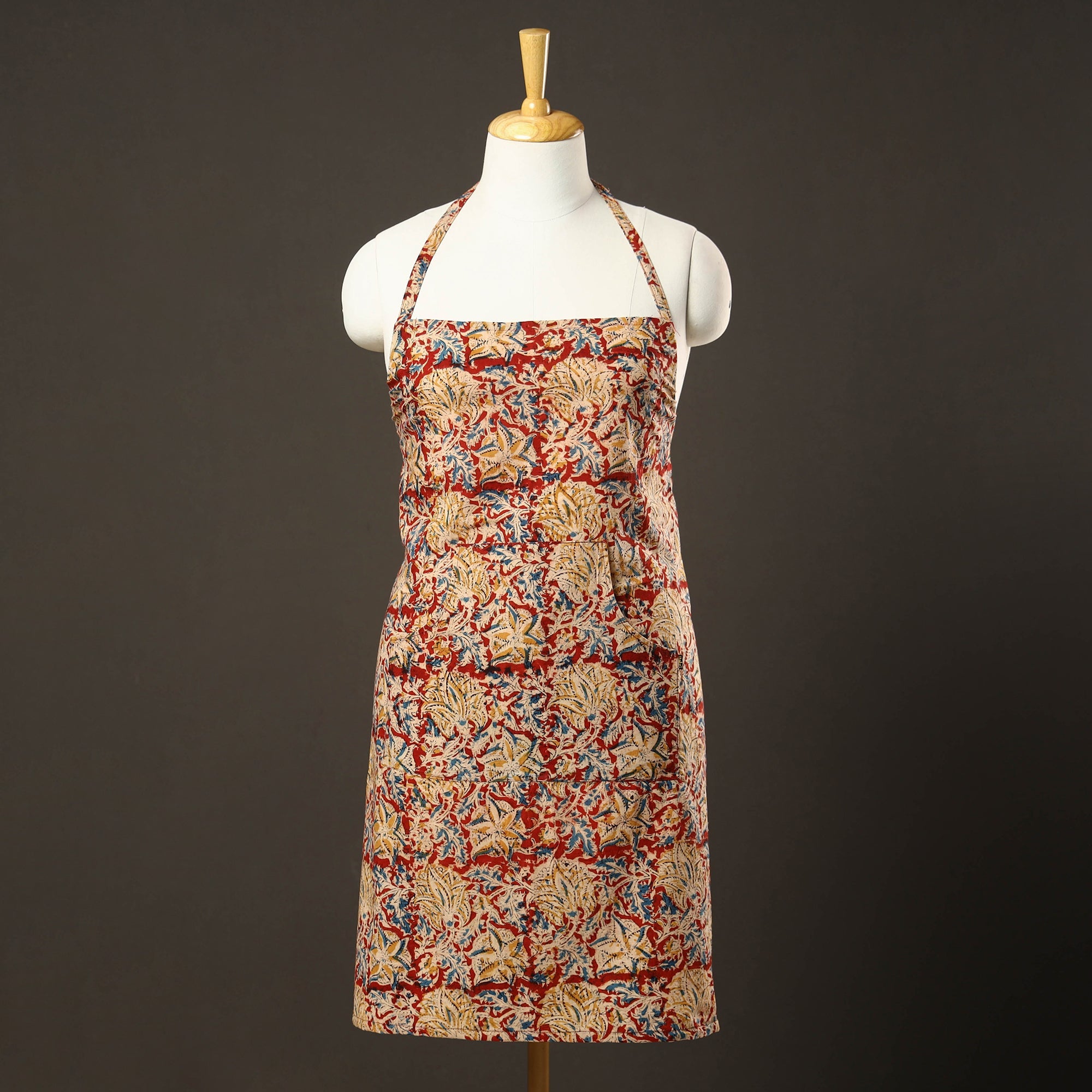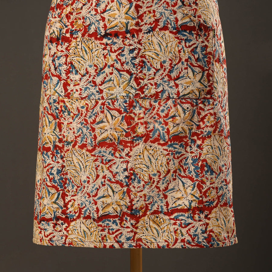 This red kalamkari block-printed cotton apron with pocket is a versatile and stylish addition to your cooking and baking ensemble! This apron is perfect for protecting your clothing from splatters and spills while you work in the kitchen. With a convenient pocket at the front, this apron allows you to keep all your essential kitchen tools close at hand. The adjustable neck strap and waist ties ensure a comfortable and secure fit for all body types, making this apron suitable for both men and women.