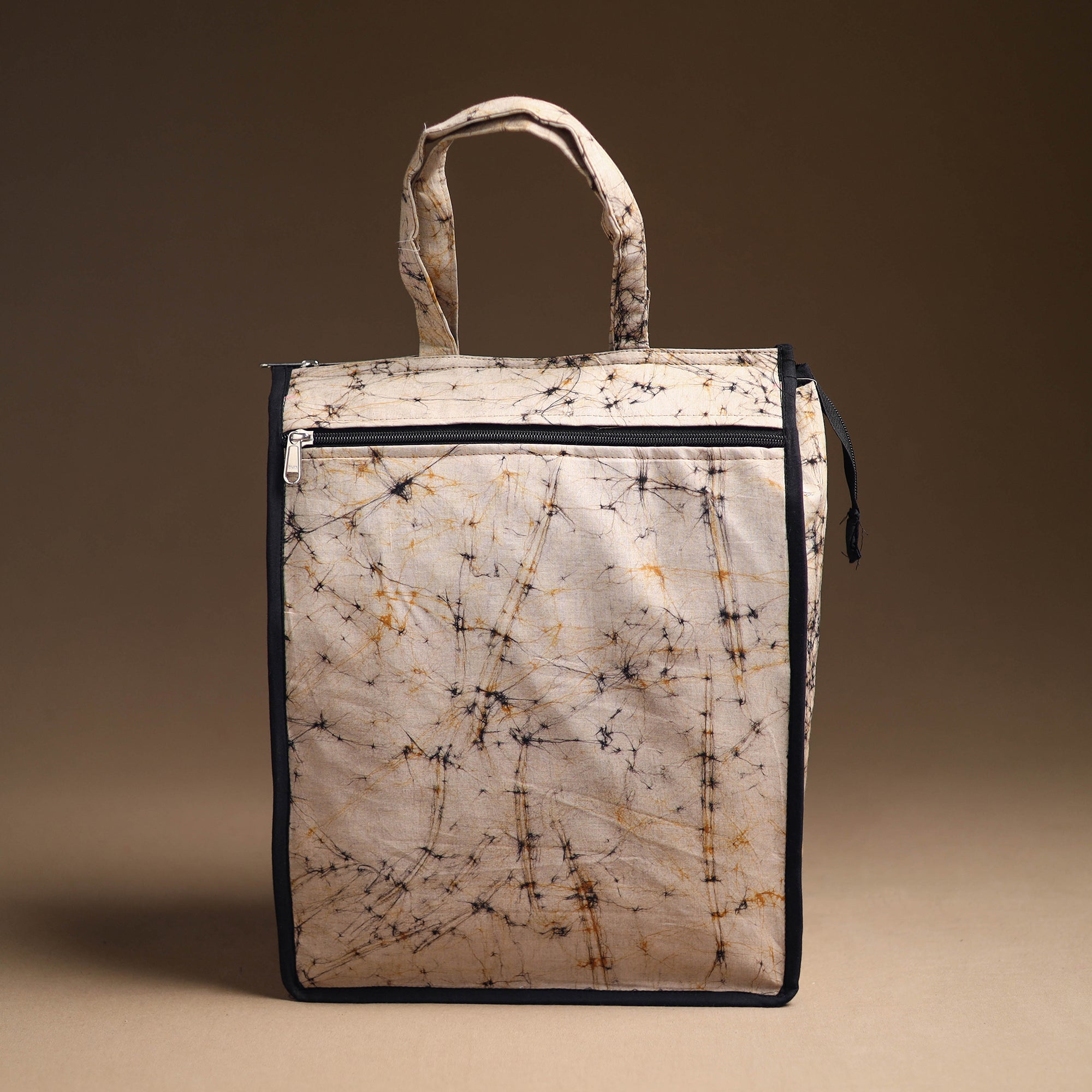 Enhance your shopping routine with our beige handcrafted cotton shopping bag. Textured with handmade textiles from India, it is a convenient, stylish, and sustainable companion for your daily shopping, and it has enough space to accommodate most of the items. It also has one zipper pocket outside.